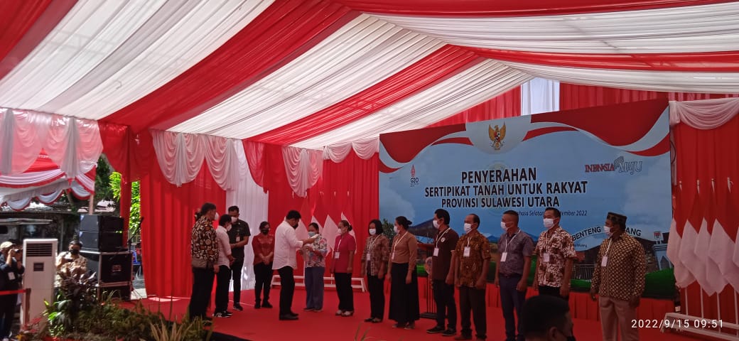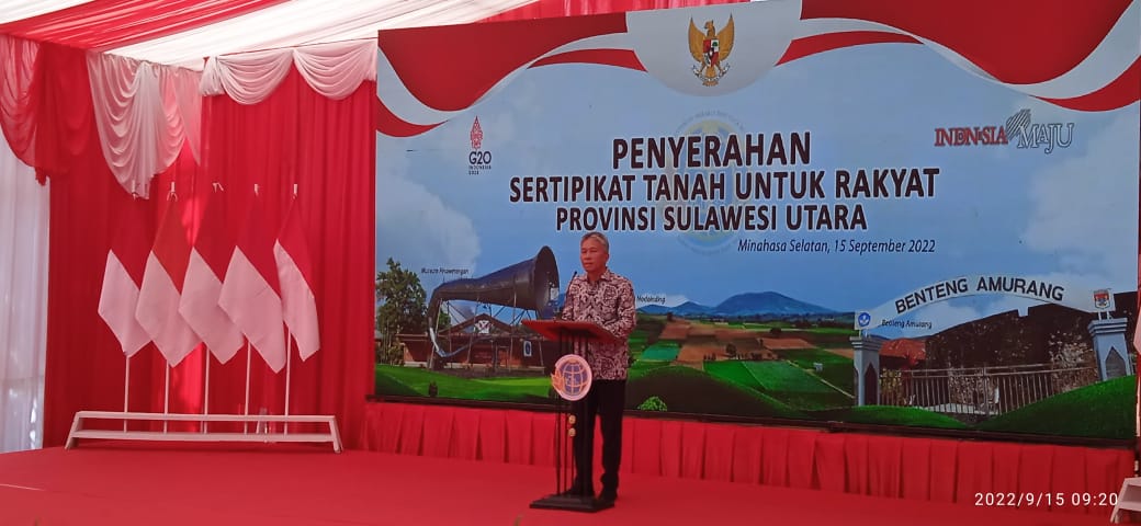 Penyerahan sertifikat yang berlangsung di Desa Ongkau Tiga Kecamatan Sinonsayang, Kamis, (15/09/2022) pagi, juga dihadiri Wakil Menteri ATR/BPN Raja Juli Anthoni, Sekjen KPA, Wagub Sulut Steven Kandow serta jajaran Forkopimda baik tingkat provinsi maupun kabupaten.