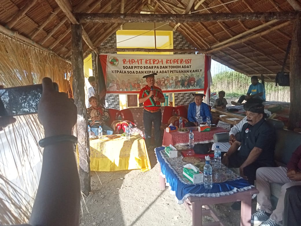Terasnkri com | Maluku, Namlea – Pelaksanaan Rapat kerja Koperasi Soar Pito Soar Pa petuanan Negeri Kaiely bertempat di Baileo Matetemun di dusun Tanah Merah desa Waitina kecamatan Waelata kabupaten Buru Sabtu, (1/10/2022), pukul 16.00.Wit.