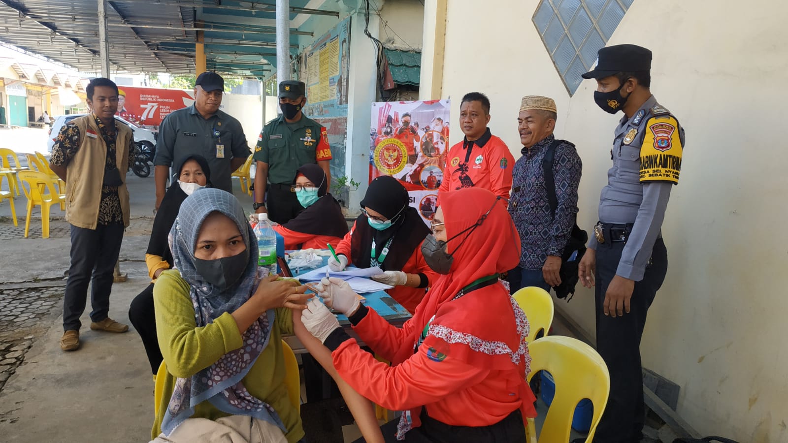 TERASNKRI.COM | NUNUKAN, KALTARA (Jumat, 07/10/2022) – Badan Intelijen Negara (BIN) Daerah Kalimantan Utara kembali menggelar kegiatan pemberian vaksinasi Covid 19 baik untuk dosis 1, dosis 2, maupun booster/dosis 3 yang ditujukan bagi masyarakat di Pulau Sebatik perbatasan Indonesia – Malaysia, berlokasi di Kompleks Pertokoan Kebalen Jaya Desa Sungai Nyamuk Kecamatan Sebatik Timur Kabupaten Nunukan Provinsi Kalimantan Utara.