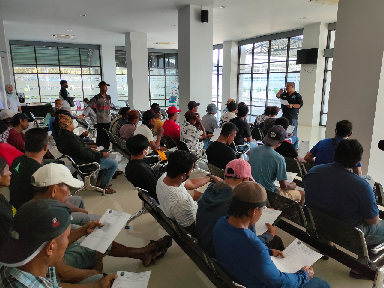 TERASNKRI.COM | NUNUKAN, KALTARA – Kantor Kesyahbandaran dan Otoritas Pelabuhan (KSOP) Kelas IV Nunukan bekerjasama dengan Badan Narkotika Nasional (BNN) Kabupaten Nunukan menyelenggarakan kegiatan deteksi dini melalui tes urine kepada Buruh Tenaga Kerja Bongkar Muat (TKBM) sebagai salah satu upaya dalam mencegah penyalahgunaan narkoba. Tes urine dilaksanakan dalam beberapa tahap, dimulai dengan tes urine kepada pengurus Koperasi TKBM pada hari Kamis (6/10/2022). Tes urine berlanjut kepada Buruh TKBM yang pada Minggu (9/10/2022) dan Kamis (13/10/2022) bertempat di Terminal Keberangkatan Pelabuhan Tunon Taka Nunukan. Sementara bagi buruh TKBM yang berhalangan hadir pada hari tersebut, diberikan kesempatan untuk tes urine susulan yang bertempat di Kantor Koperasi TKBM dan Kantor BNNK Nunukan.