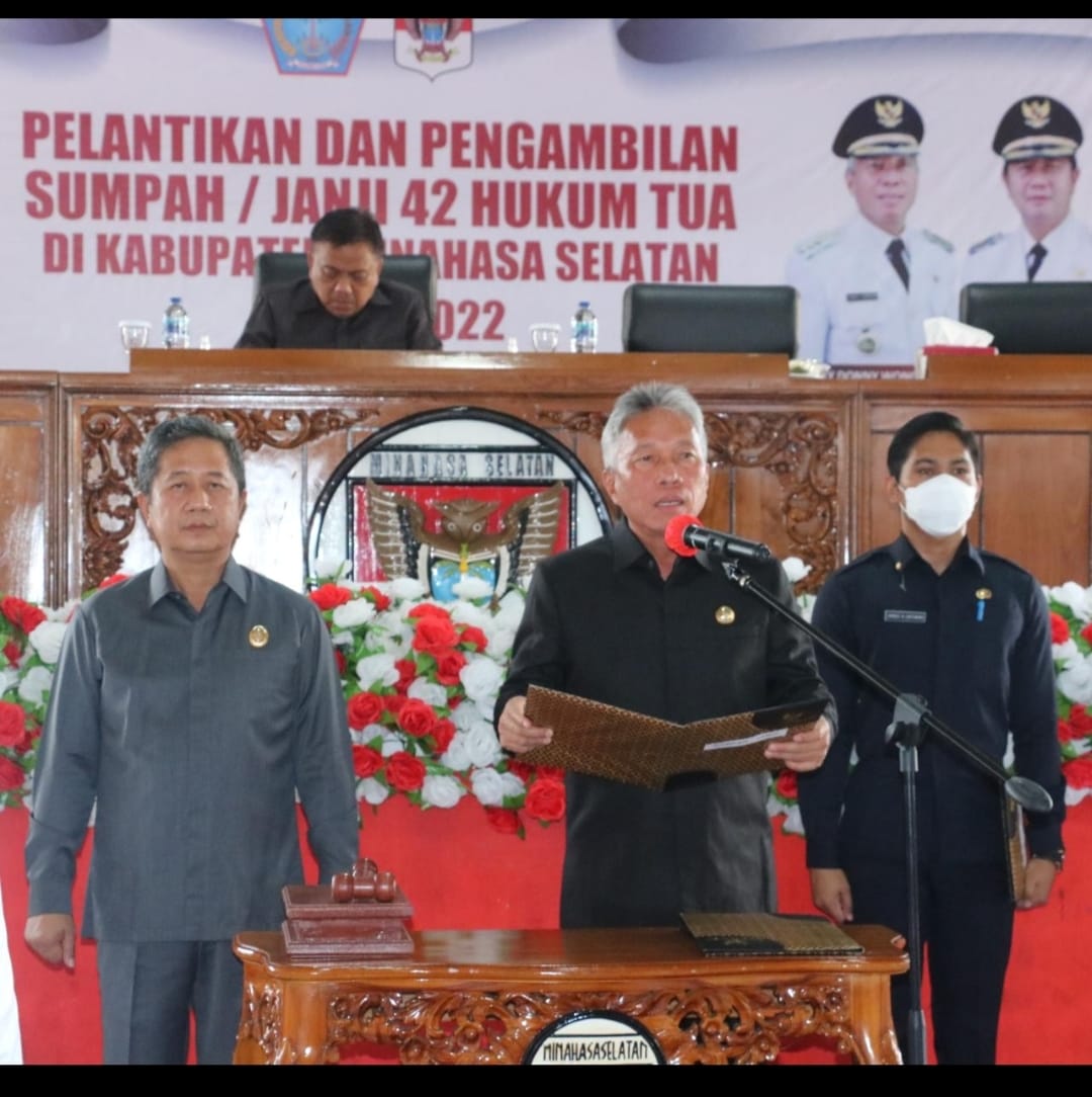 Pengambilan Sumpah Janji Jabatan dan Pelantikan 42 Hukum Tua Di Kabupaten Minahasa Selatan