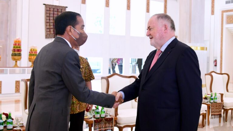 TERASNKRI.COM | JAKARTA – Sebelum bertolak menuju Kamboja, Presiden Joko Widodo melakukan pertemuan dengan Presiden World Water Council (WWC) Loïc Fauchon di Ruang VVIP Bandara I Gusti Ngurah Rai, Provinsi Bali, pada Rabu, 9 November 2022. Dalam keterangannya selepas pertemuan, Loïc berharap agar Presiden Jokowi dapat menyampaikan pesan kepada seluruh anggota G20 mengenai pentingnya posisi air sebagai prioritas utama.