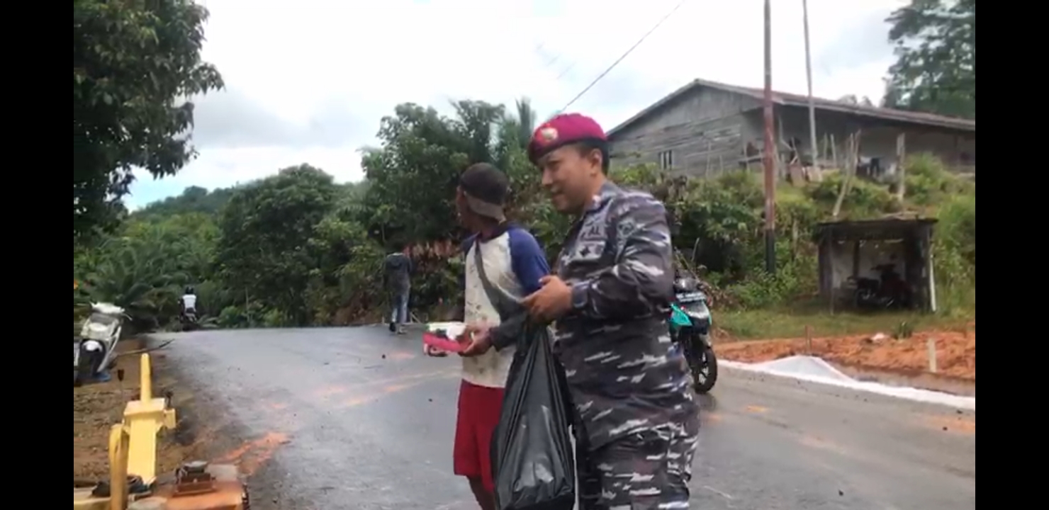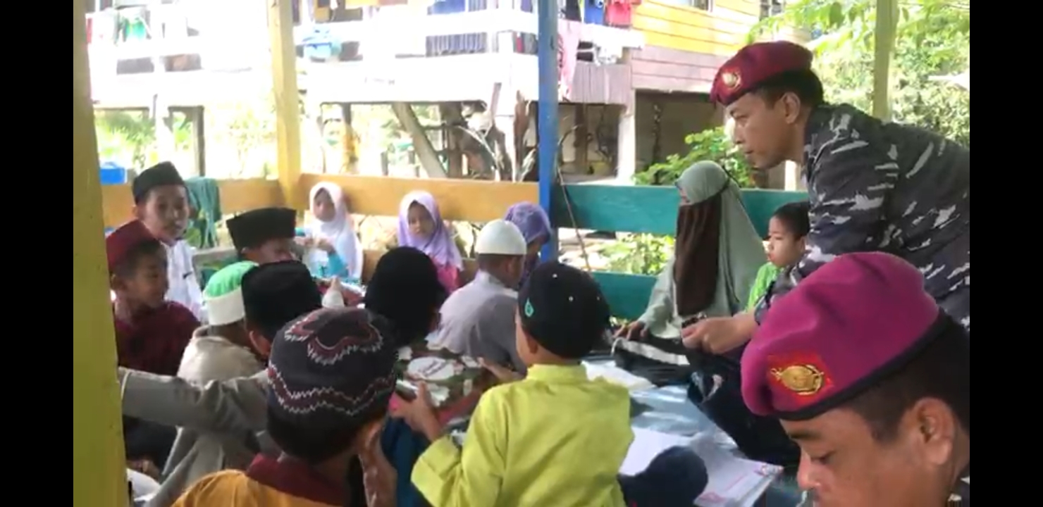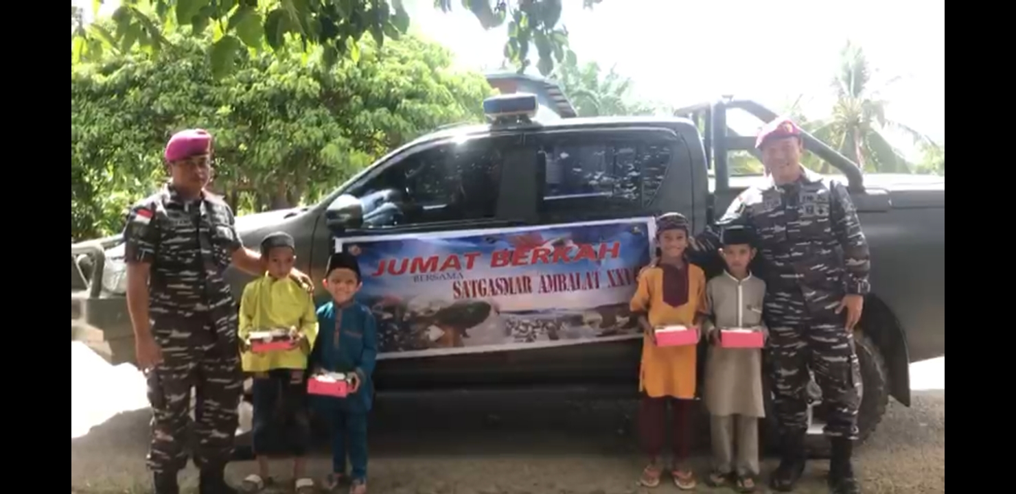 Kegiatan Jum’at Berkah tersebut, dipimpin langsung Komandan Pos Pancang Lettu Marinir Victor Aji Hersanto bersama anggota dari Komando Taktis (Kotis).