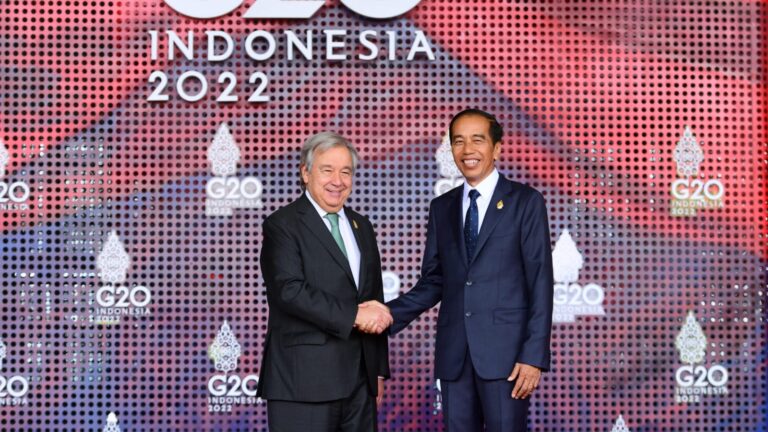 TERASNKRI.COM | BALI – Presiden Joko Widodo menyambut para pemimpin negara-negara G20 dan pemimpin organisasi internasional yang menghadiri Konferensi Tingkat Tinggi (KTT) G20 di Hotel Apurva Kempinski Bali, Kabupaten Badung, pada Selasa, 15 November 2022. Kedatangan para pemimpin ini menandai dimulainya acara puncak KTT G20 di Bali.