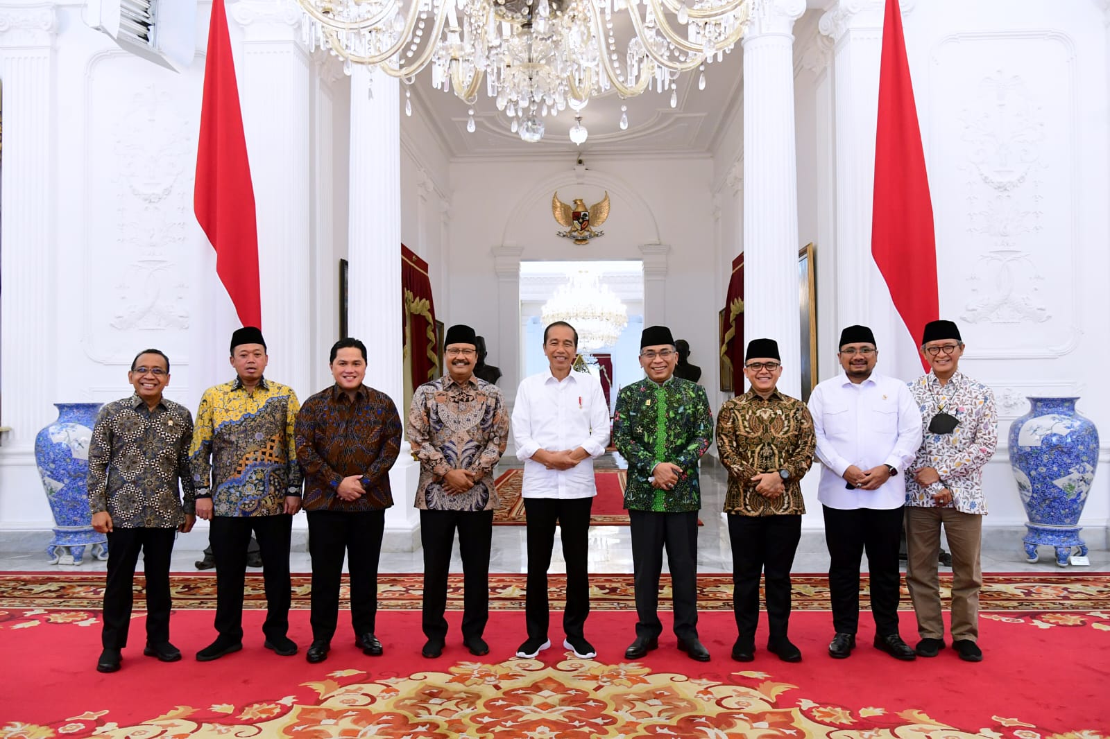 Turut mendampingi Presiden dalam pertemuan tersebut yaitu Menteri Sekretaris Negara Pratikno dan Menteri Agama Yaqut Cholil Qoumas. (TN/BPMI Setpres)