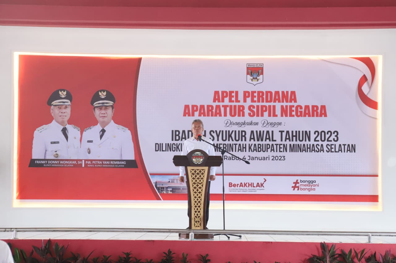 Terasnkri.com | Minsel, Sulut – Apel Perdana Aparatur Sipil Negara dirangkaikan Dengan Ibadah Syukur Awal Tahun 2023 di lingkungan Pemerintah Kabupaten Minahasa Selatan , Rabu (4/1/2023)
