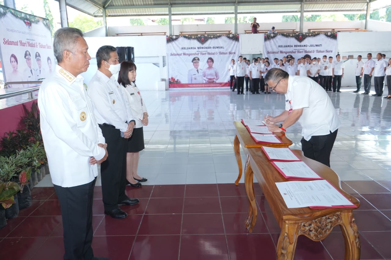 Dalam sambutannya, Bupati Franky Donny Wongkar, SH memberikan apresiasi kepada perangkat daerah yang sudah bekerja dengan baik selama tahun 2022. Bupati FDW mengingatkan kepada perangkat daerah yang sudah menandatangani pakta integritas agar melakukan tupoksi dengan penuh rasa tanggungjawab.