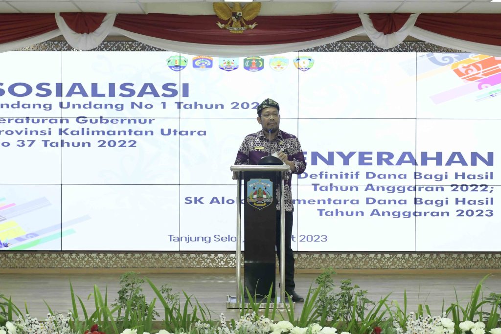 Demikian disampaikan Asisten 3 bidang Administrasi Umum Setdaprov Kaltara, Pollymart Sijabat, SKM., M.AP saat menyampaikan sambutan tertulis Gubernur Kaltara Drs H Zainal A. Paliwang, S.H., M.Hum pada acara Sosialisasi Undang-undang (UU) Nomor 1 Tahun 2022 dan Peraturan Gubernur (Pergub) Nomor 37 Tahun 2022 di Ruang Serbaguna Gedung Gadis Pemprov Kaltara, Kamis (2/3/2023)