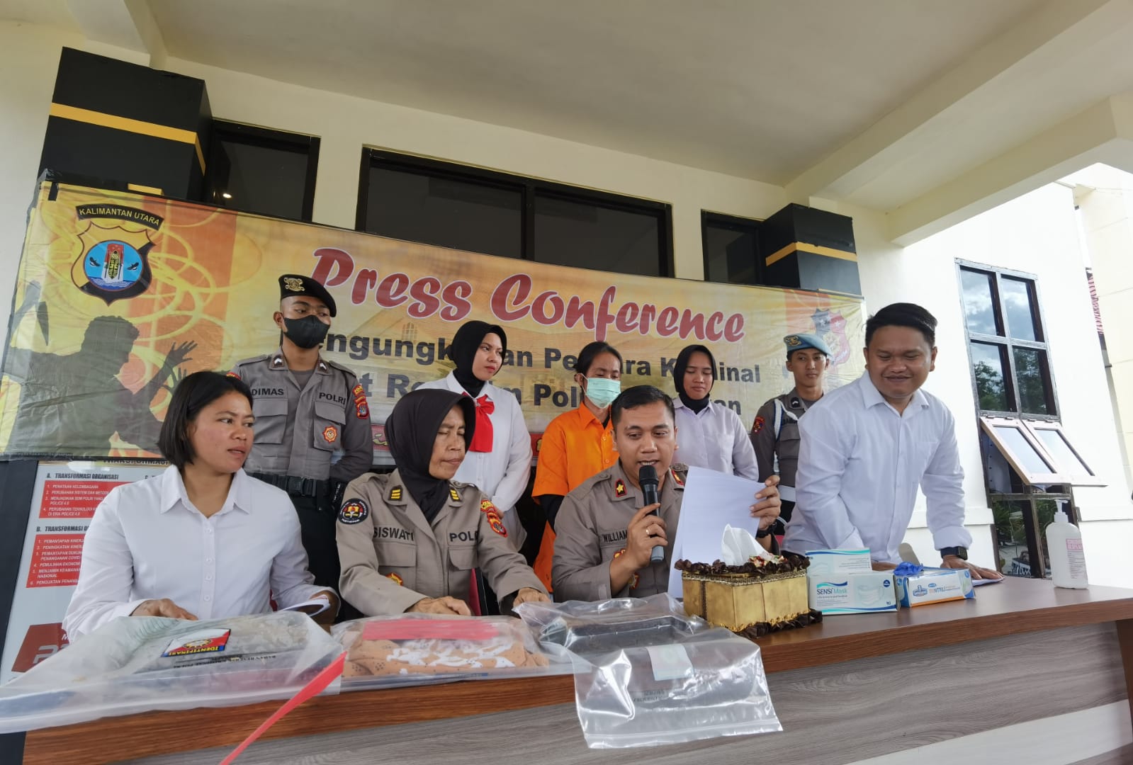 “Kejadiannya pada 25 Februari 2023 di rumah yang beralamat di Jl. Dawing RT. 05 RW. 03 Desa Liang Bunyu sekira pukul 10.00 Wita, pelaku merasa jengkel kepada korban, sebab ketika memarahi korban, korban dianggap melawan dan pelaku mendorong korban sehingga jatuh ke WC dengan posisi tengkurap, menyebabkan luka di wajahnya, selanjutnya pelaku memukuli korban dengan sebuah balok berkali – kali dibagian kepala hingga leher, melihat korban tidak bergerak, pelaku panik dan memapah korban untuk membawanya berobat” jelas Wiliam