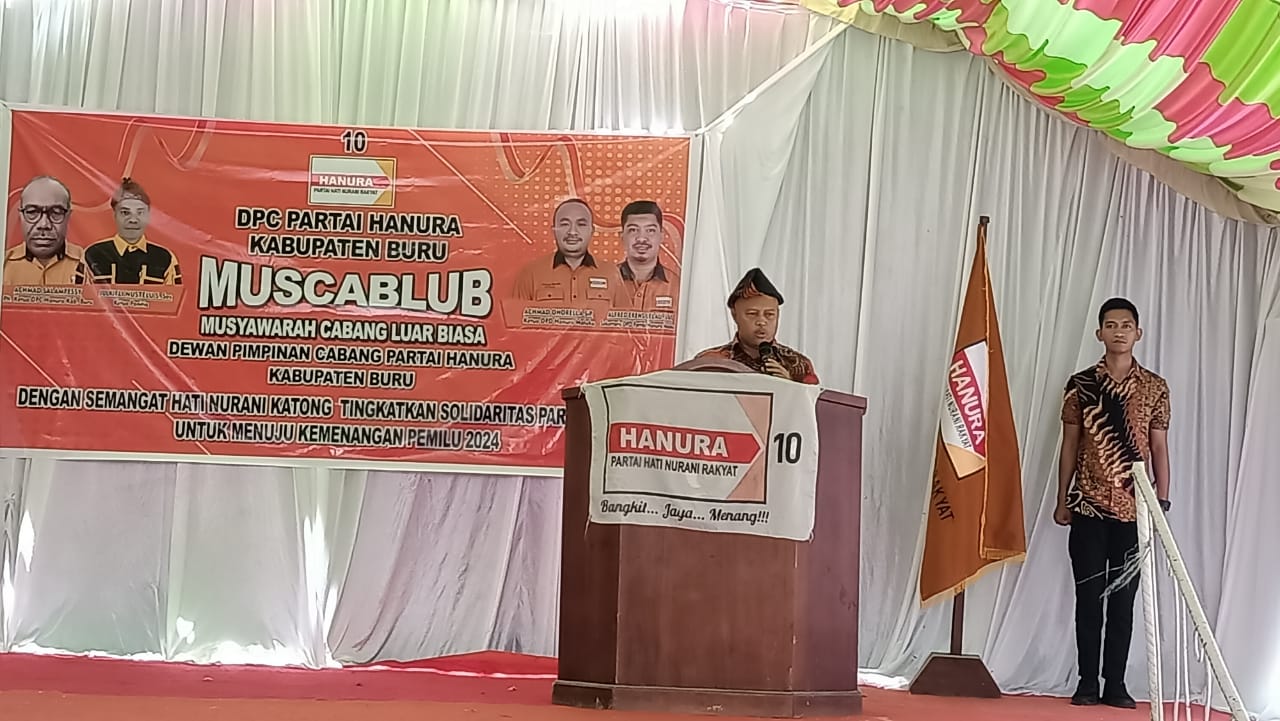 Penjabat Bupati Buru Dr Djalaluddin, S.Pi, M.Si memberikan sambutan sekaligus membuka Acara Muscablub DPC Partai Hanura Kabupaten Buru menyampaikan bahwa dirinya sangat bangga, dan luar biasa di kesempatan yang dihadiri bersama ini patutlah kita Panjatkan Puji Syukur kepada Allah Subhanahu Wa Ta’ala Tuhan Yang Maha Kuasa Atas Limpahan Rahmat dan Kasih Nya kita bisa bertemu untuk mengikuti Pembukaan Musyawarah Partai Hanura Kabupaten Buru yang kita yakin sungguh melahirkan pemimpin-pemimpin terbaik dari Partai Hanura untuk nantinya bisa bertarung bersama-sama dengan partai politik lainnya.