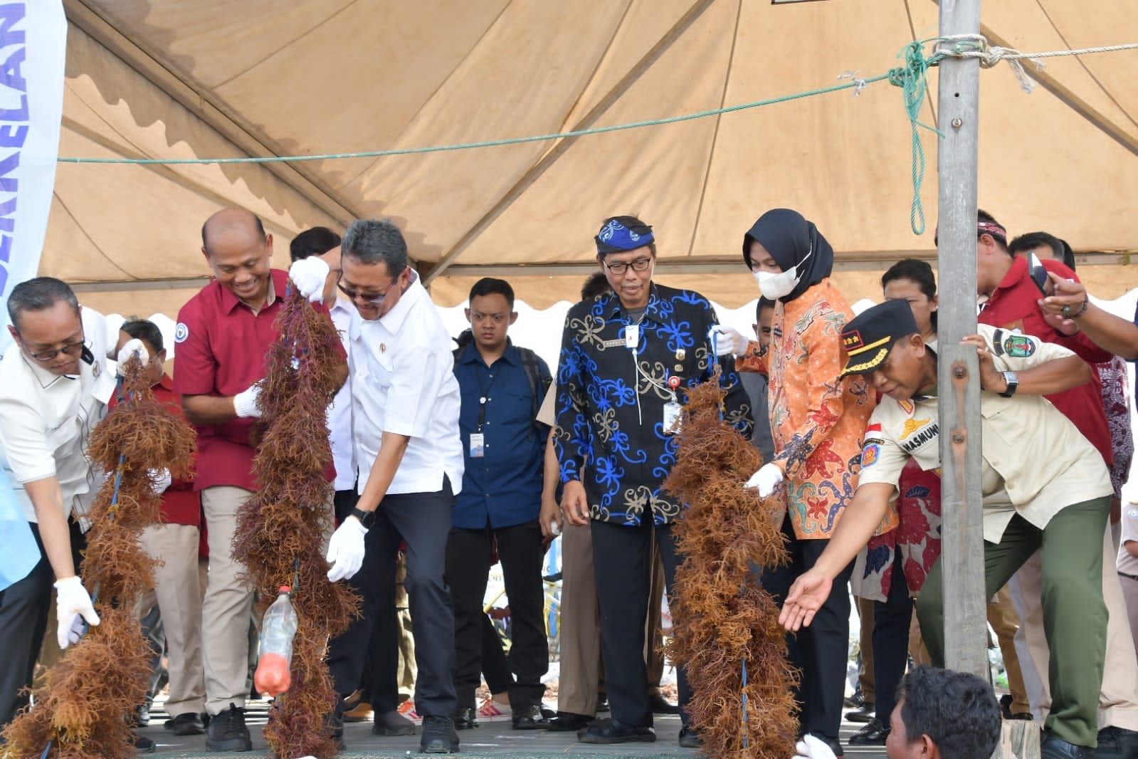 “Ini adalah salah satu kampung yang telah menjadi kampung budidaya rumput laut yang harus menjadi satu modelling industri hulu hilir mulai dari pembibitan kemudian panen kering dan kemudian disiapkan industri dengan demikian nanti yang keluar dari sini bukan lagi dalam bentuk raw material tapi yang tentunya sudah punya nilai tambah lebih tinggi”, ungkap Sakti.