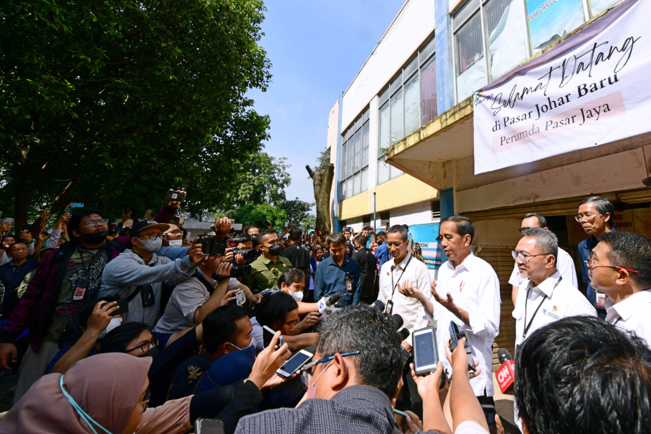 TERASNKRI.COM | JAKARTA – Presiden Joko Widodo meninjau langsung harga dan ketersediaan sejumlah komoditas pangan di Pasar Johar Baru, Jakarta Pusat, pada Rabu, 5 April 2023. Menurut Presiden, peninjauan tersebut dilakukan menjelang Hari Raya Idulfitri 1444 Hijriah.