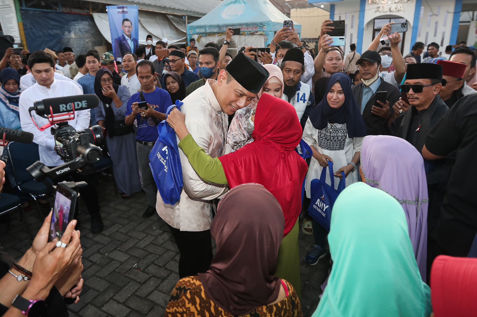AHY dan Annisa disambut pasukan marching band, pencak silat, kesenian angklung, dan rampak bedug. Dalam kesempatan itu, AHY menyerahkan secara simbolis bantuan 3000 liter minyak goreng kepada warga yang membutuhkan dan ratusan bantuan untuk yatim piatu.