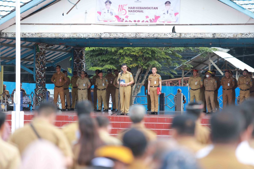 TERASNKRI.COM | TANJUNG SELOR, KALTARA – Wakil Gubernur Drs. Yansen TP, MSi bertindak sebagai Pembina Apel Upacara Bendera di Lapangan Agathis Tanjung Selor dalam rangka Hari Kebangkitan Nasional (Harkitnas) ke-115 Tahun 2023, Senin (29/5/2023). Turut hadir Sekretaris Provinsi, Asisten, Staff ahli, OPD dan para ASN dilingkungan Pemerintah Provinsi (Pemprov) Kaltara.