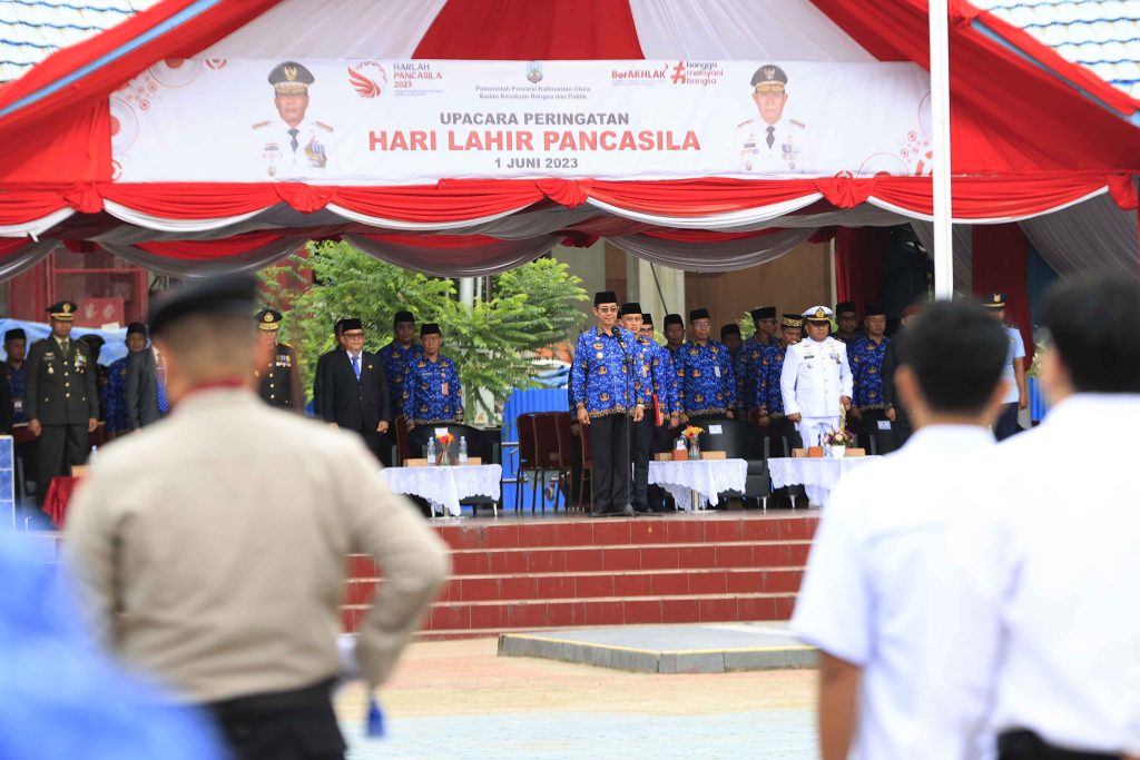 TERASNKRI.COM | TANJUNG SELOR – Wakil Gubernur Kaltara, Dr Yansen TP, M.Si memimpin apel peringatan Hari Lahir Pancasila di Lapangan Agatis, Kamis (1/6/2023). Hadir dalam peringatan itu Anggota Forkopimda, kalangan mahasiswa dan pelajar serta ASN di Lingkungan Pemerintah Provinsi Kaltara