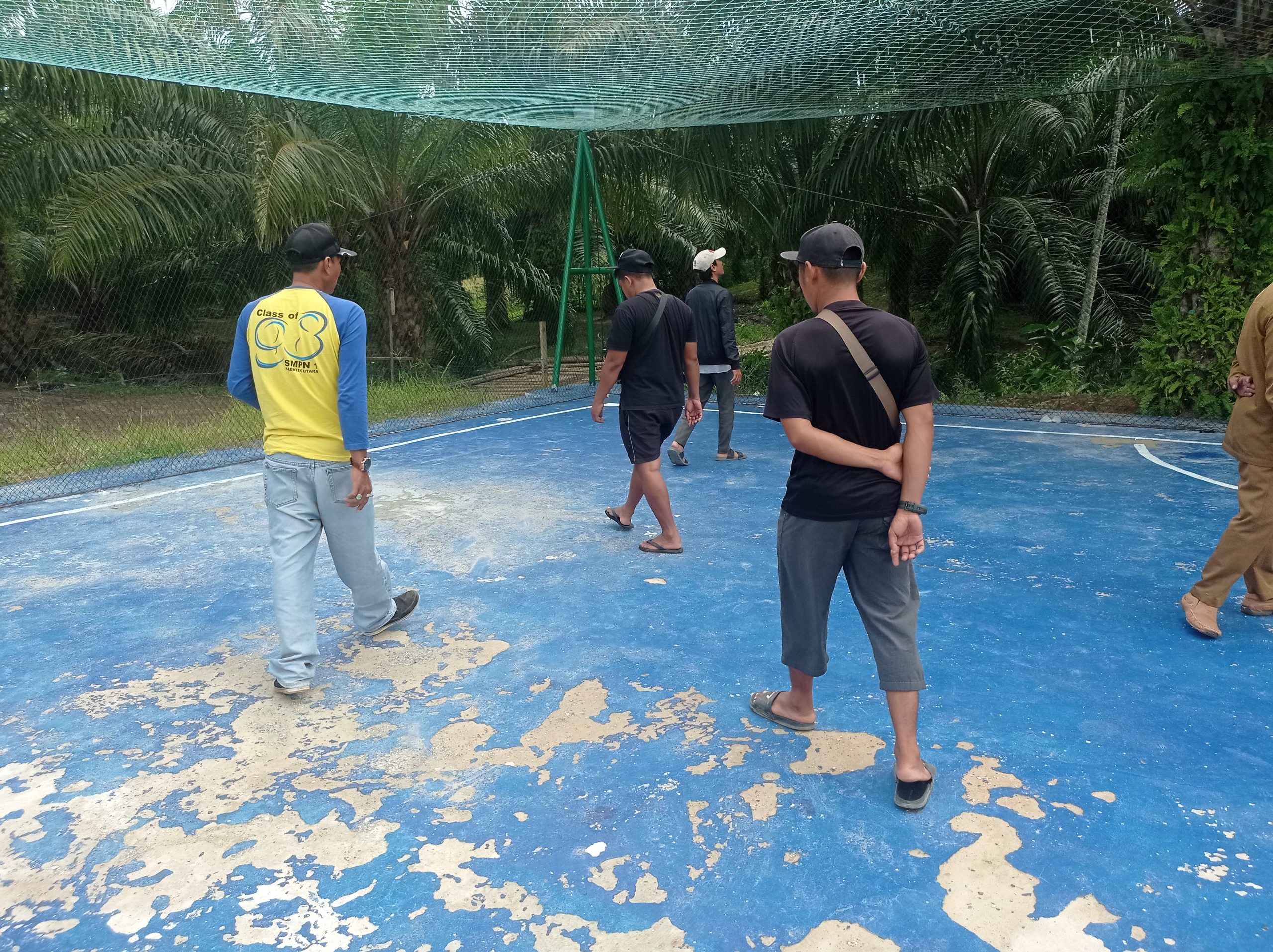 “Sebagaimana kita lihat bersama tadi, lapangan tidak rata atau bergelombang bahkan ada yang sudah terkelupas sehingga pasir dan kerikilnya sudah kelihatan, tidak ada tiang gawang, kemudian jaring yang menutupi lapangan dibagian tengah hanya setinggi kurang lebih 2.5 meter, membuat kita tidak mungkin untuk bermain, karena ketika bola melambung akan langsung terhalang jaring dan kita tidak tahu arahnya” tegas Lan