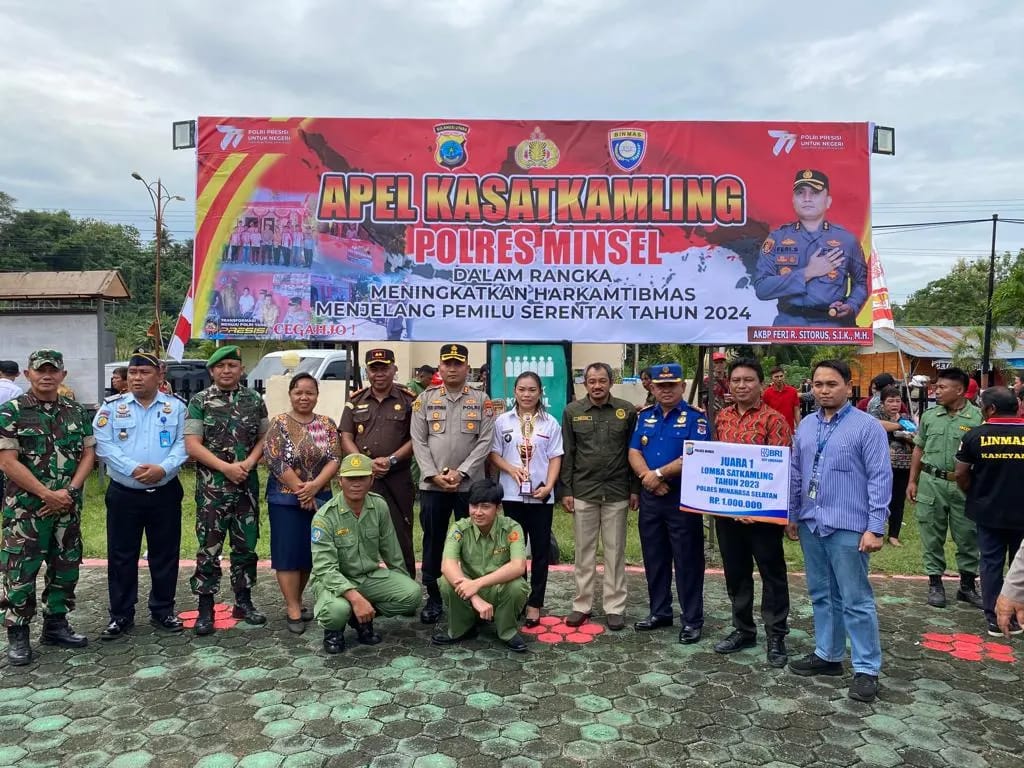 Apel Kasatkamling dirangkaikan dengan penyerahan piala pemenang lomba Satkamling tingkat Polres Minsel tahun 2023, yakni Juara 1 Satkamling Desa Tawaang Barat, Kec. Tenga; Juara 2 Satkamling Desa Pontak Satu, Kec. Ranoyapo; Juara 3 Satkamling Desa Karowa, Kec. Tompasobaru serta Satkamling Kreatif Desa Motoling Dua, Kec. Motoling, atas inisiatif pemasangan CCTV untuk memantau situasi Kamtibmas dalam desa. (Corry N/Humas Polres Minsel)
