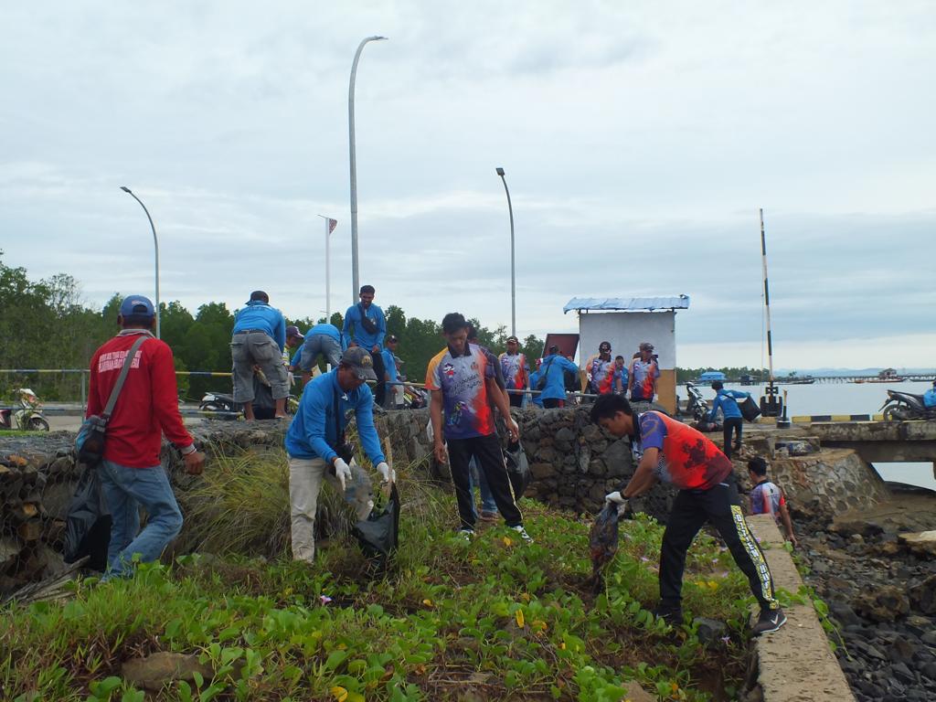 Kantor Unit Penyelenggara Pelabuhan (UPP) Kelas III Sungai Nyamuk bersama Agen Perusahaan Pelayaran dan para Tenaga Kerja Bongkar Muat Pelabuhan Sebatik melaksanakan bersih laut dan pantai di lingkungan Pelabuhan Sungai Nyamuk.