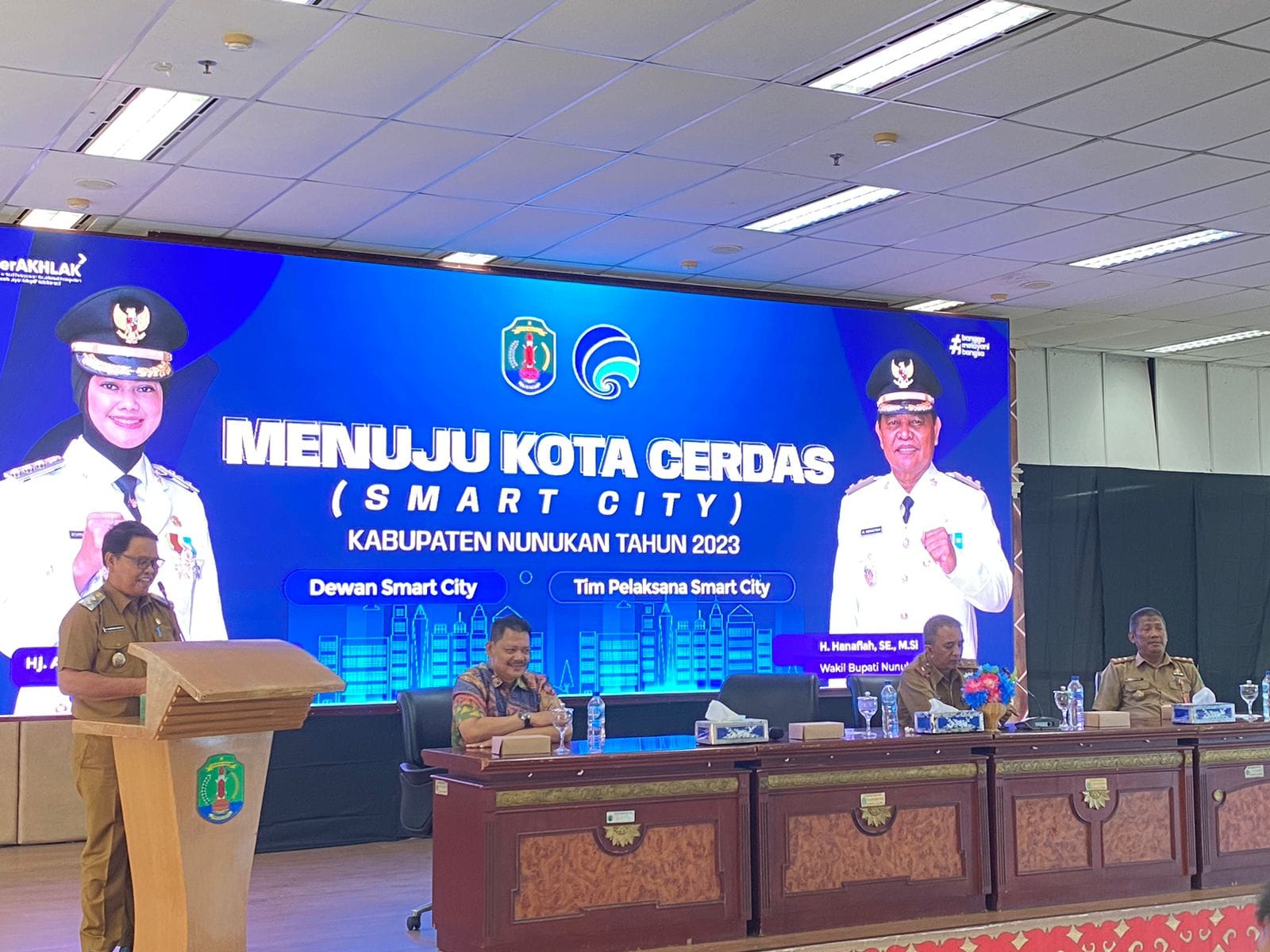 Lebih lanjut lagi, Hanafiah menyampaikan bahwa Pemerintah Kabupaten Nunukan secara perlahan telah mengarah kepada yerwujudnya Smart City, yang ditandai dengan pembangunan infrastruktur jaringan Fiber Optik, pembangunan aplikasi, data senter dan lain-lain.