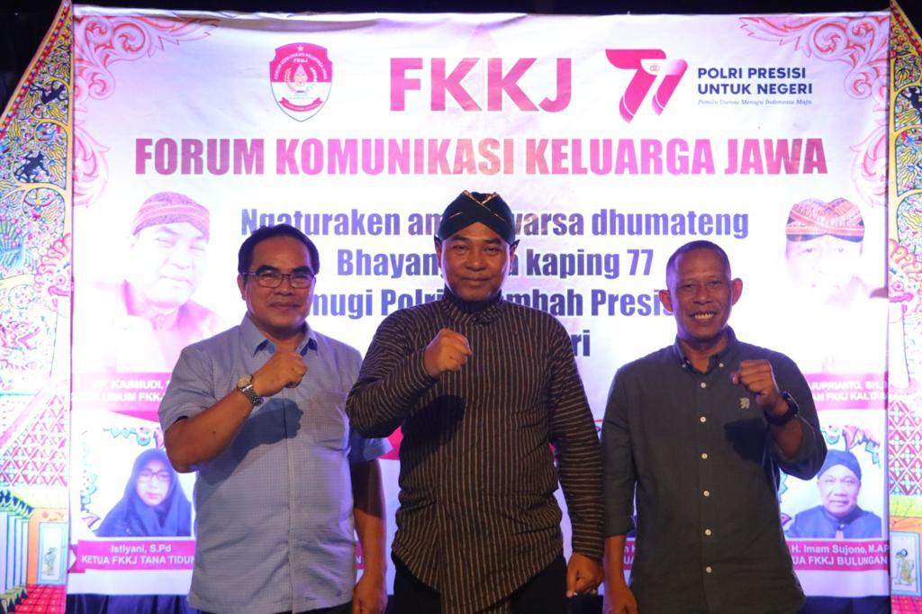 Kegiatan ini dihadiri Ketua Umum FKKJ Kaltara Brigjen Pol Kasmudi, S.IK, Sekda Prov Kaltara, Kapolresta Bulungan, Bupati Bulungan dan tamu undangan warga komunitas Jawa dengan tema Ngaturaken Ambal Warsa Dhumateng Bhayangkara ke-77 Mugi Polri tinambah Presisi Kagem Nagari.