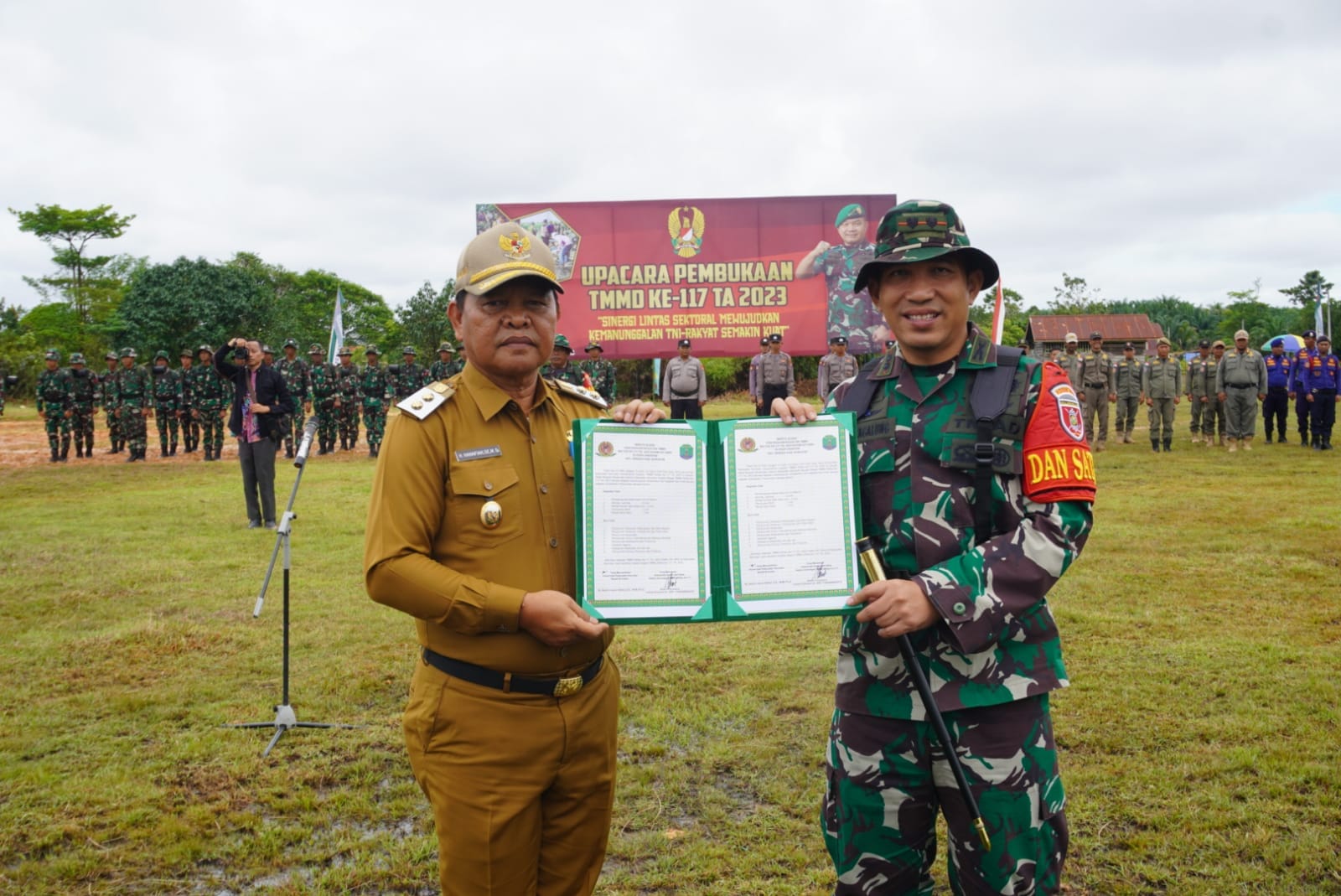 Pada pelaksanaan Upacara Pembukaan TMMD, Wabup Hanafiah melakukan penandatanganan dan penyerahan Nota Program kegiatan TMMD Ke-117 serta penyerahan alat-alat kerja secara simbolis.