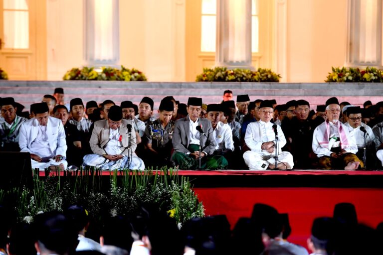 TERASNKRI.COM | JAKARTA – Presiden Joko Widodo beserta Ibu Iriana Joko Widodo menghadiri acara zikir dan doa kebangsaan di halaman Istana Merdeka, Jakarta, pada Selasa, 1 Agustus 2023. Acara tersebut merupakan bagian dari rangkaian kegiatan peringatan Hari Ulang Tahun (HUT) ke-78 Kemerdekaan Republik Indonesia.