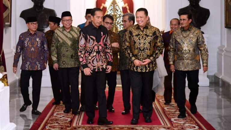 TERASNKRI.COM | JAKARTA – Presiden Joko Widodo menerima pimpinan Majelis Permusyawaratan Rakyat (MPR) di Istana Merdeka, Jakarta, pada Rabu, 9 Agustus 2023. Dalam keterangannya, Ketua MPR Bambang Soesatyo mengatakan bahwa pertemuan tersebut salah satunya membahas mengenai persiapan Sidang Tahunan MPR RI dan Sidang Bersama DPR dan DPD RI.