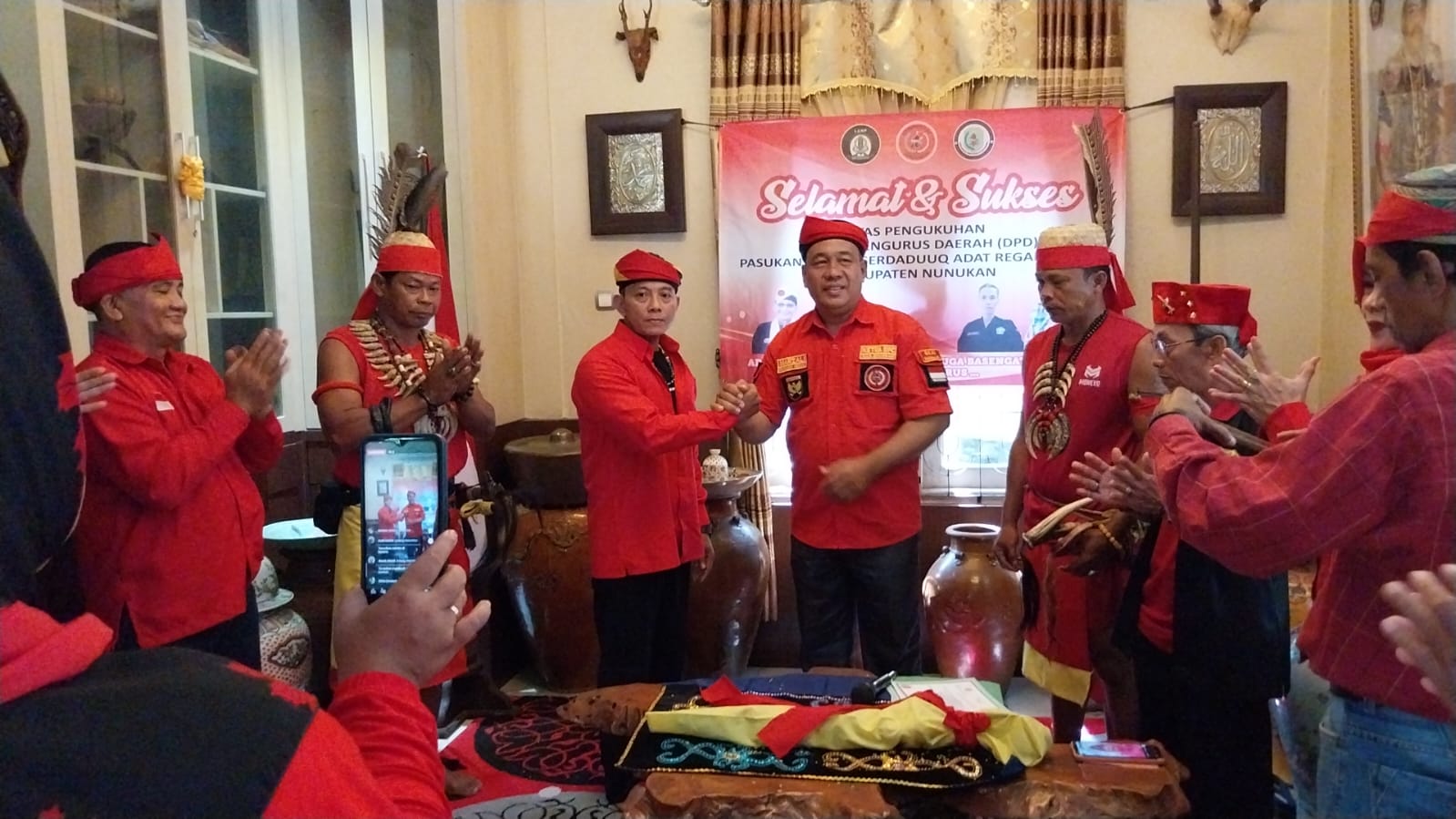 TERASNKRI.COM | NUNUKAN, KALTARA – Pengukuhan PM – SART DPD KABUPATEN NUNUKAN (Pasukan Merah – Serdaduuq Adat Regatn Tatau Dewan Pengurus Kabupaten Nunukan) oleh Dewan Pengurus Pusat Kalimantan yang bermarkas di Balikpapan Selatan Kota Balikpapan Kaltim dilaksanakan di kediaman Almarhum Ir. H.Faridil Murad, SE., MM, Ketua Pusaka Kalimantan mantan Wabup Nunukan pada Sabtu, 12 Agustus 2023.