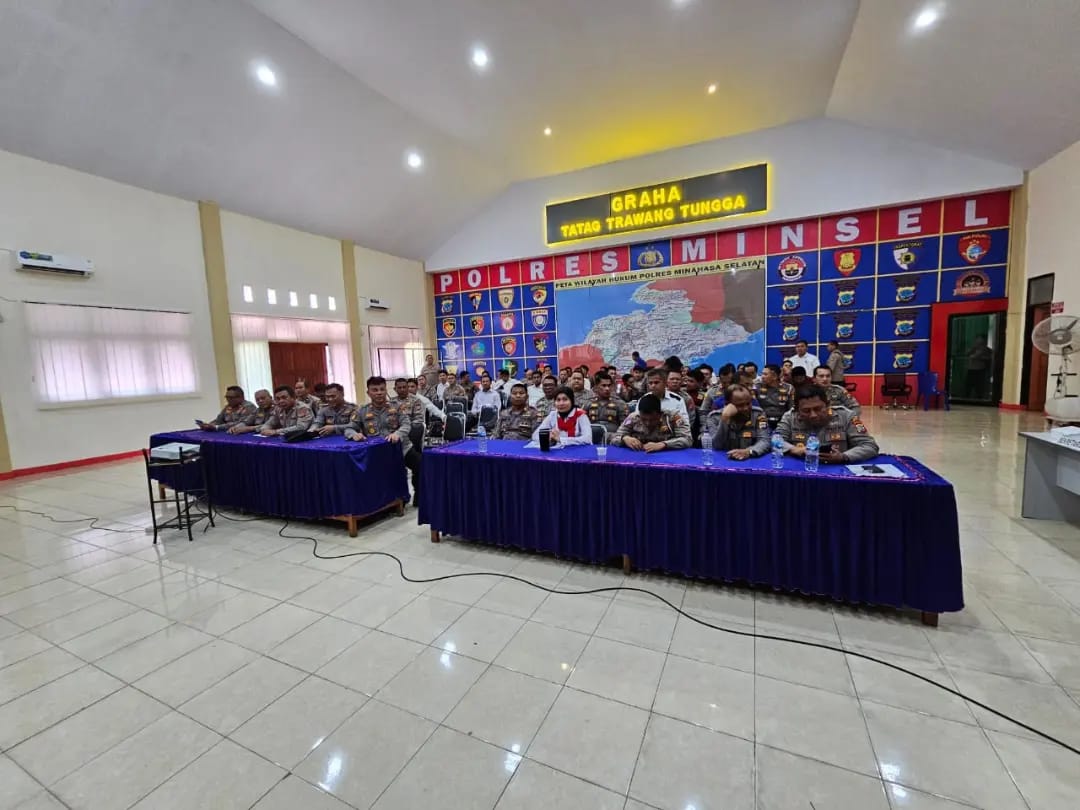 terasnkri.com | Minsel, Sulut – Polres Minahasa Selatan (Minsel) melaksanakan Latihan Pra Operasi Mantap Brata 2024 pengamanan Pemilu tahun 2024, di gedung aula Graha Tatag Trawang Tungga, Kamis (12/10/2023).