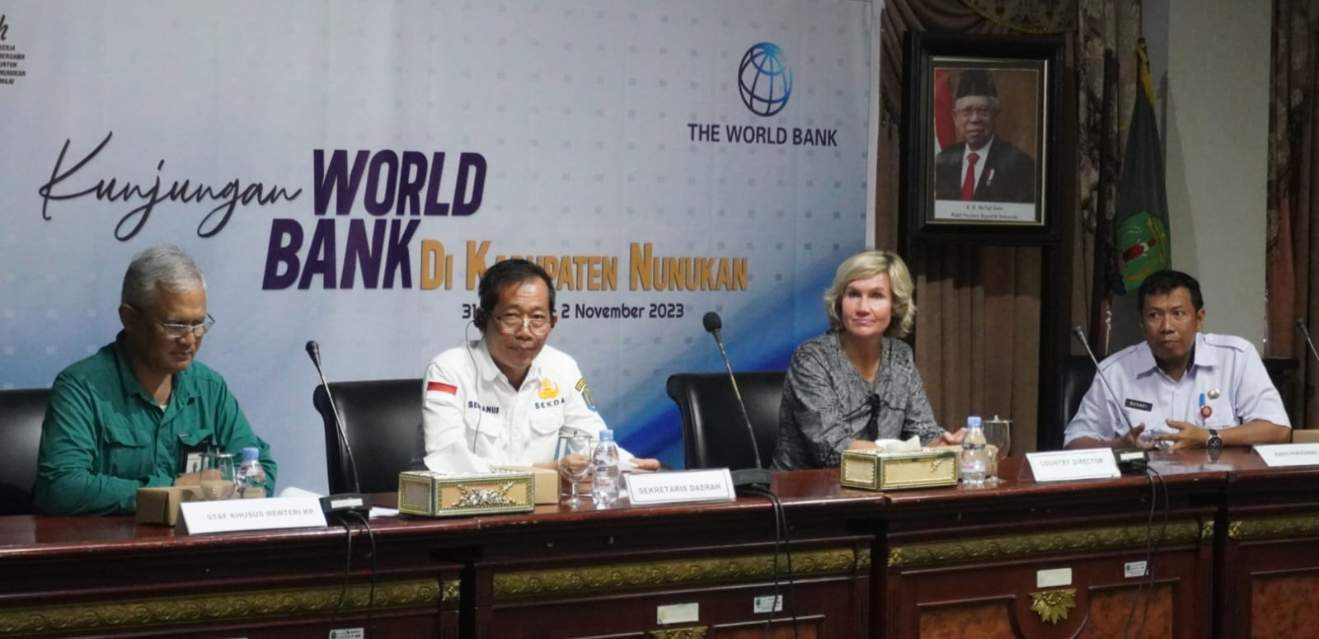 Setelah melakukan kunjungan lapangan di Kampung Nelayan Budidaya Rumput laut Mamolo Kec. Nunukan Selatan, Kepala Perwakilan Bank Dunia Indonesia Timur Leste (Country Director) Satu Kahkonen beserta rombongan di dampingi Sekretaris Daerah Kab. Nunukan Serfianus Mewakili Bupati Nunukan, melanjutkan pertemuan di Kantor Bupati Nunukan guna membahas hasil kunjungan lapangan budidaya rumput laut.