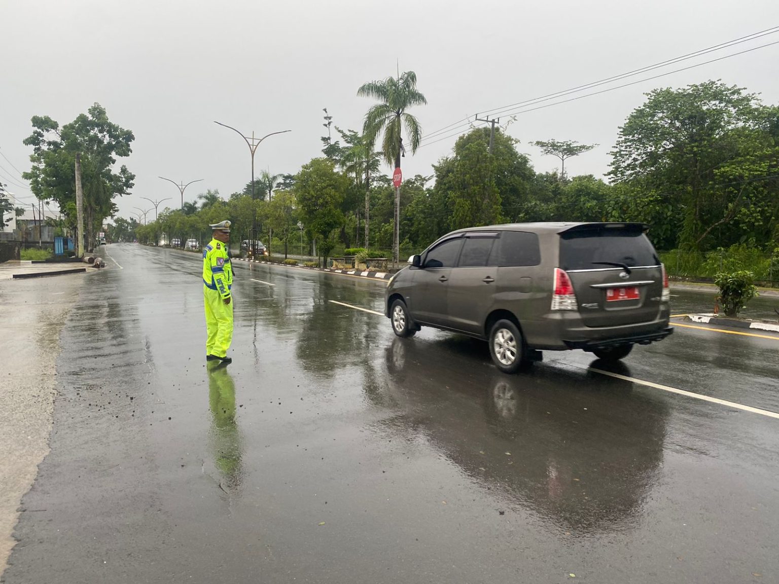 Meski Diguyur Hujan, Ditlantas Polda Kaltara Tetap Lakanakan Gatur Pagi Hari