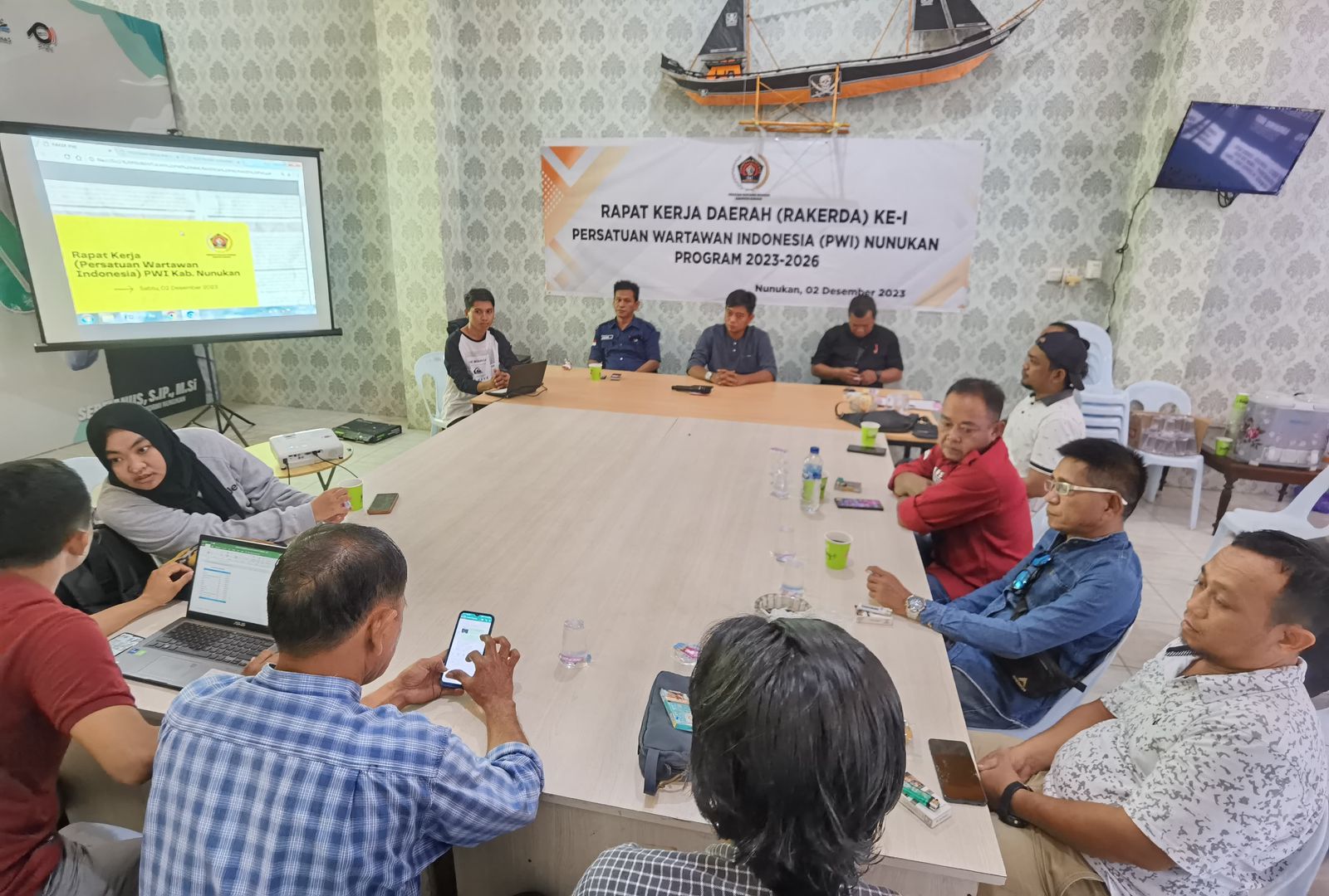 Rakerda ke-I PWI Nunukan dihadiri unsur pengurus dan dewan penasehat. Program yang disusun dan dibahas bersama, tertuang secara resmi dalam berita acara hasil rapat untuk kemudian disahkan menjadi program kerja periode 2023-2026. (pwicenter)