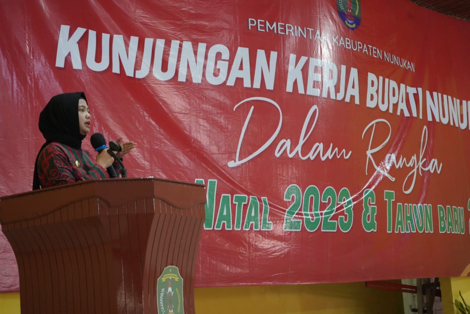 TERASNKRI.COM | NUNUKAN, KALTARA – Bupati Nunukan Hj Asmin Laura Hafid dengan didampingi oleh Sekretaris Daerah Kabupaten Nunukan Serfianus mulai melaksanakan safari natal tahun 2023. Pelaksanaan safari natal yang pertama dilaksanakan di Wilayah 4 dengan 8 kecamatan yang berkumpul di Gedung Balai Pertemuan Umum (BPU) Kecamatan Lumbis, Jum’at (08/12/2023)
