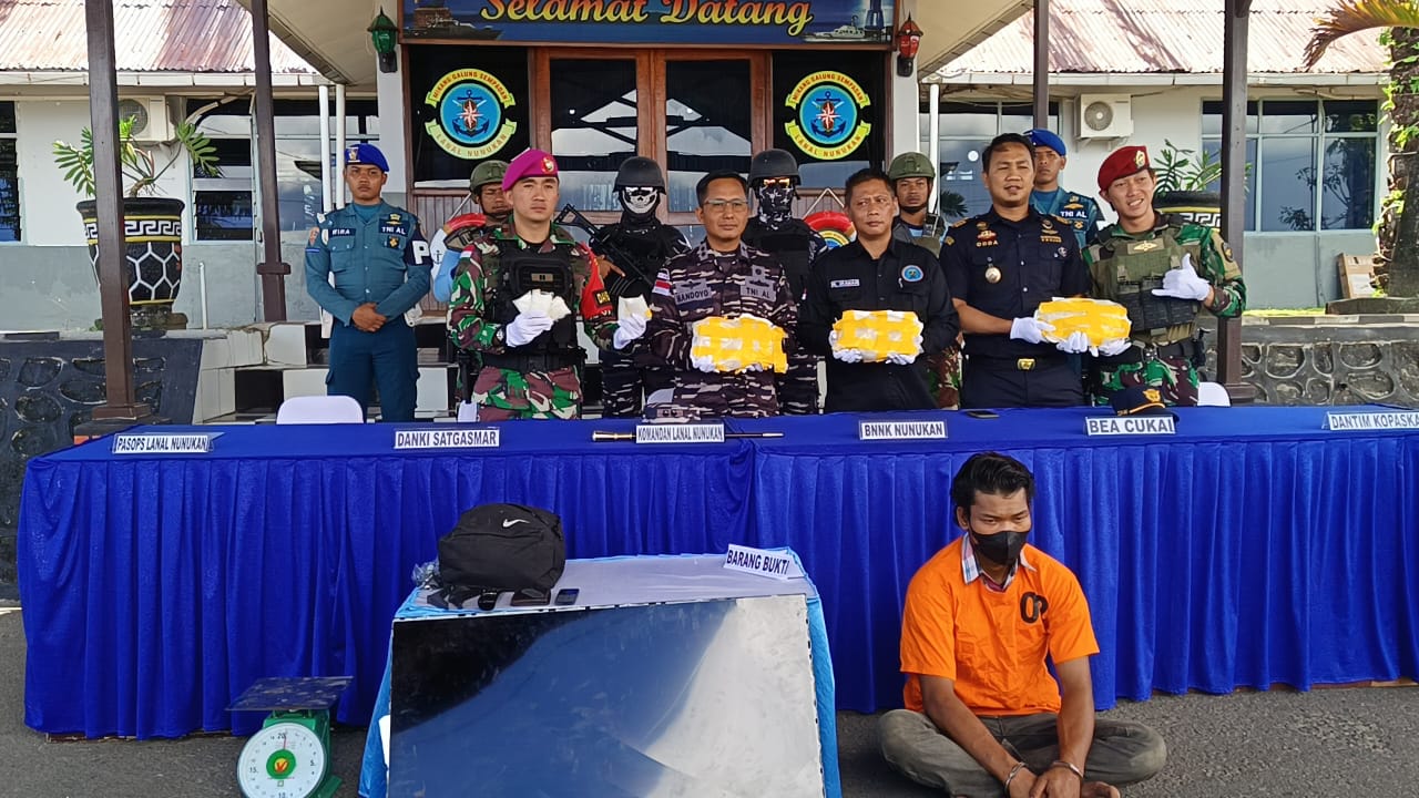 TERASNKRI.COM | NUNUKAN, KALTARA – Seorang pria berinisial AR asal Bulukumba diamankan Tim Second Fleet Quick Response (SFQR) LANAL Nunukan dan Pos AL Pancang pada Senin (25/12/2023) sore karena kedapatan mencoba menyelundupkan Narkoba Golongan 1 jenis Sabu masuk dalam wilayah Indonesia dari Tawau Sabah Malaysia.