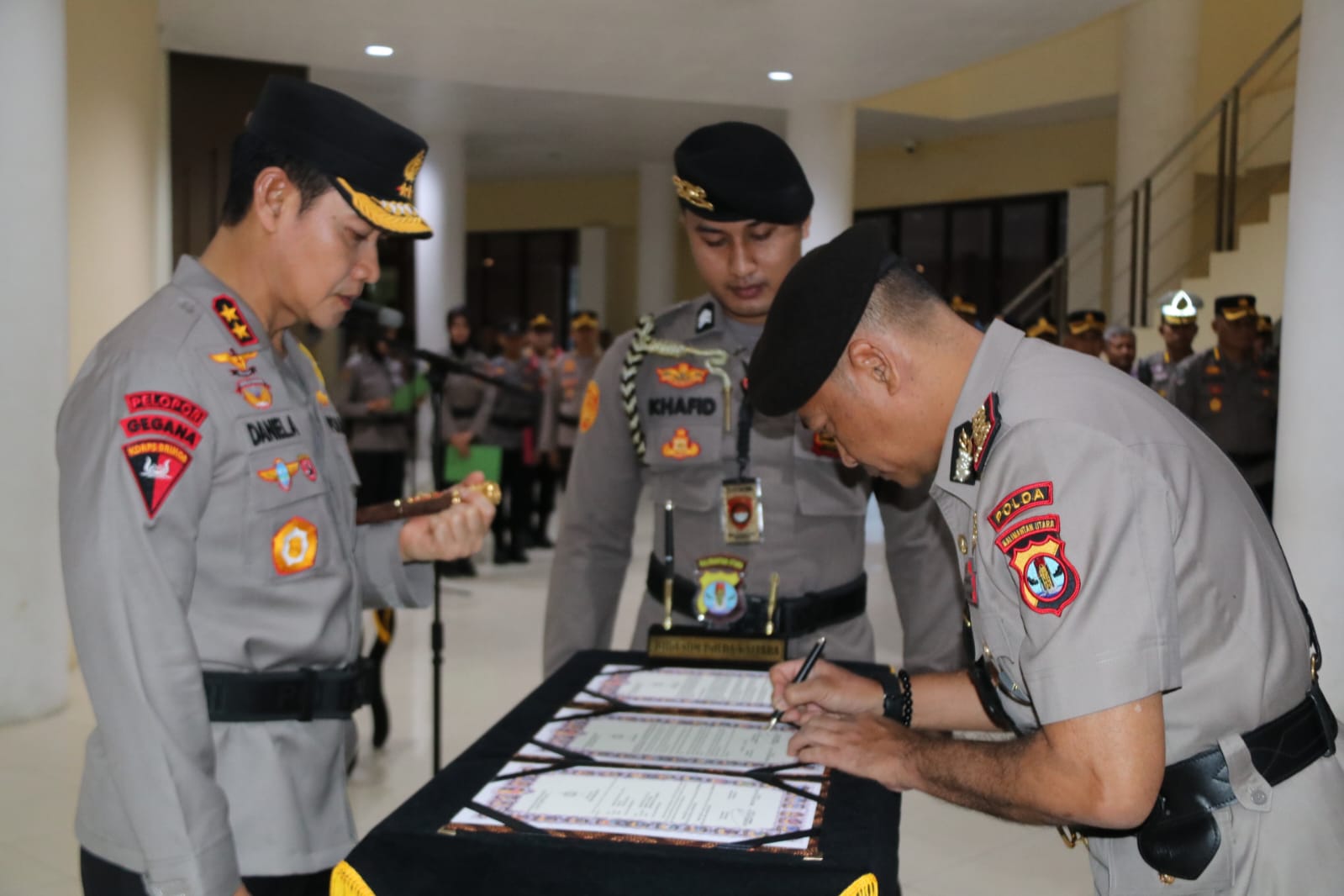 Pada sertijab tersebut, Kapolda Kaltara melakukan membacakan sumpah jabatan yang diikuti pejabat baru. Kemudian, dilanjutkan dengan penandatanganan Pakta Integritas.