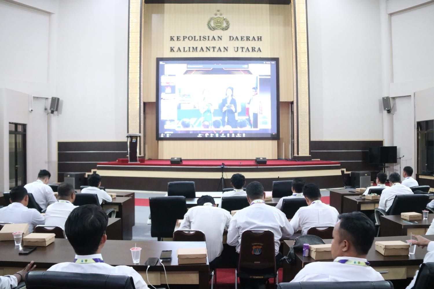 Penyampaian materi Kapolda Kaltara, melalui sinergitas TNI Polri telah melakukan berbagai kesiapan dalam mengamankan dan menyukseskan pemilu 2024. Hal ini tertuang dalam undang undang nomor 02 tahun 2002 tentang Polri yang bertugas sebagai pelindung, pengayom dan pelayan masyarakat.
