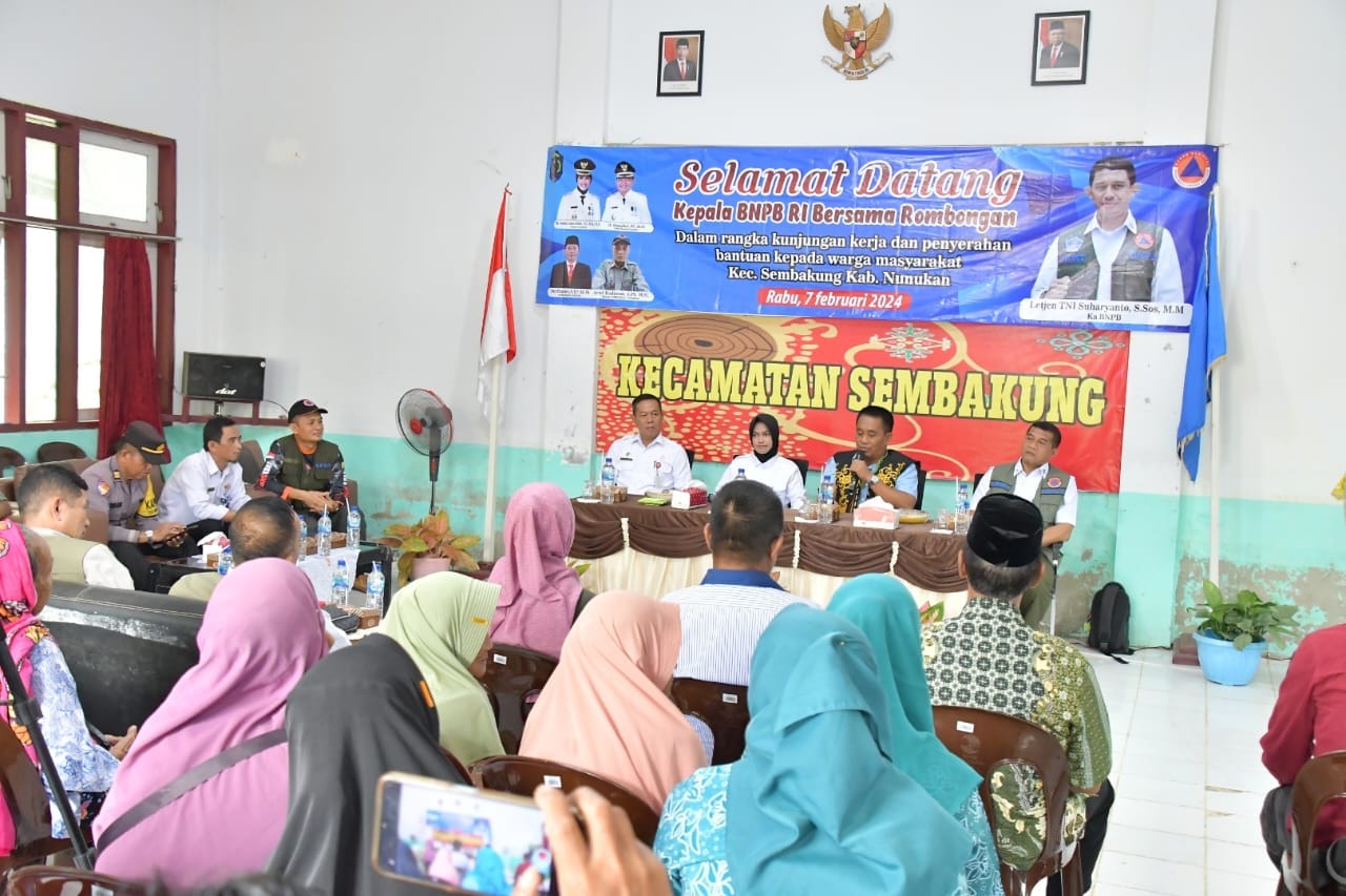 Setibanya di Desa Atap Kecamatan Sembakung seluruh rombongan bergeser ke Aula Kantor Camat Sembakung dengan agenda pertemuan dengan masyarakat dan menyalurkan bantuan berupa dana siap pakai dan bantuan logistik dan peralatan, untuk Penanganan Siaga Darurat Bencana Hidrometeorologi Kabupaten Nunukan tahun 2024.