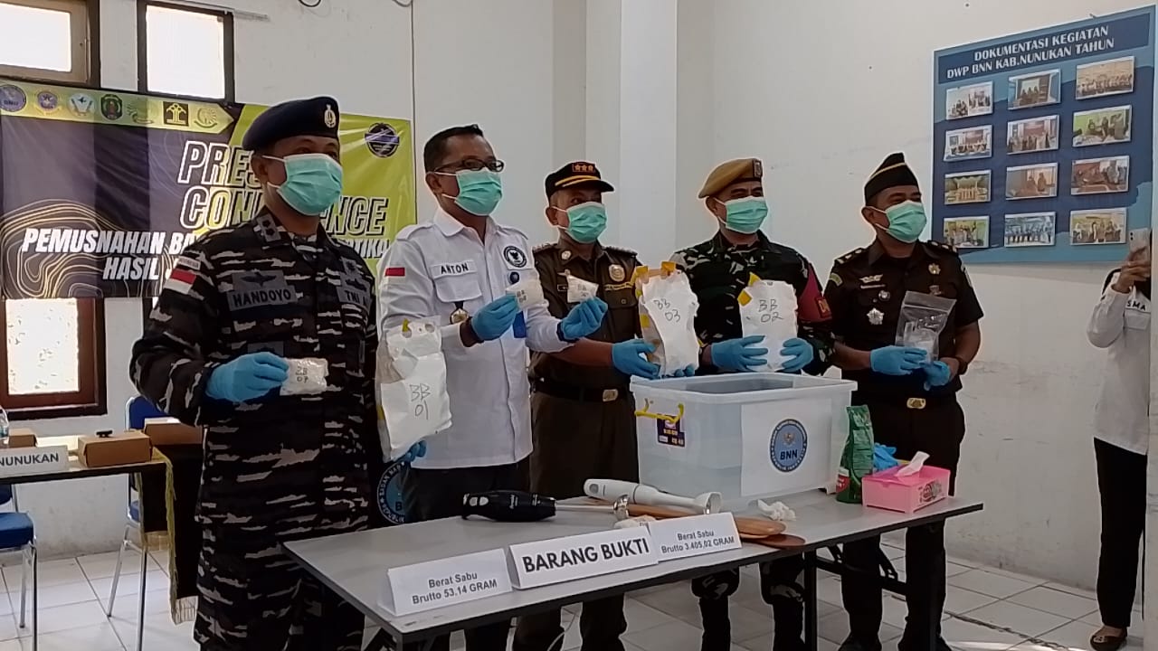 Kepala BNNK Nunukan, Anton Suriyadi Siagian, S.H., M.H menyampaikan dihadapan awak media, pemusnahan tersebut berasal dari dua perkara dan dua tersangka masing – masing Wahyuddin alias Udin bin Sudirman dengan barang bukti 53,08 gram dan Ardi alias Aldi Bin Sudding dengan barang bukti 3.405,02 gram.