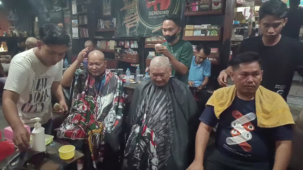 Hasil hitung cepat yang hampir mendekati enam puluh persen membuat puluhan pendukung pasangan Gemoy yang ada di Kalimantan Utara tepatnya di kota Tarakan melepas nazarnya dengan cara menggunduli kepala.