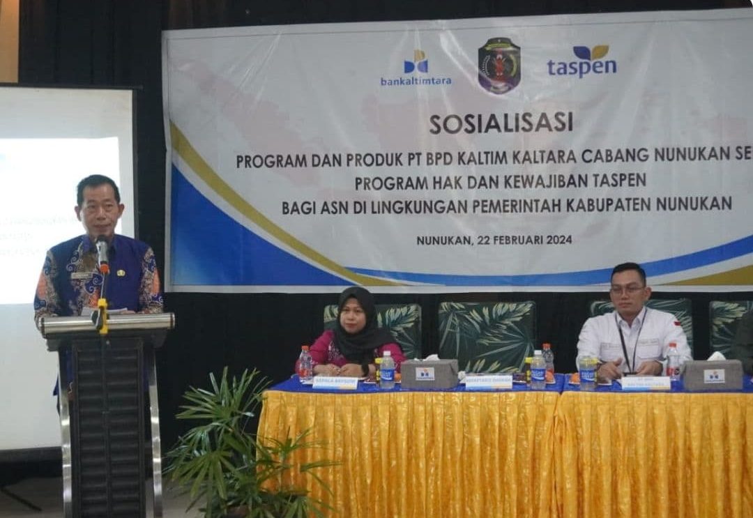TERASNKRI.COM | NUNUKAN, KALTARA – Pemerintah Daerah Kab. Nunukan Melalui BKPSDM Nunukan Bersama dengan BANKALTIMTARA Cab. Nunukan dan PT. Taspen Tarakan Melaksanakan Sosialisasi Program dan Produk PT. BANKALTIMTARA Cab. Nunukan Serta Program Hak dan Kewajiban Taspen Bagi ASN Di Lingkungan Pemerintah Kab. Nunukan. Kamis (22/2/2024).