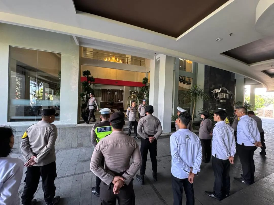 “Kami telah menerbitkan surat perintah pengamanan rapat pleno tingkat kabupaten dengan melibatkan 63 personel, ditempatkan mulai dari pintu masuk hotel hingga di ruangan tempat pelaksanaan rapat pleno, berkoordinasi dengan pihak penyelenggara yakni KPU Kabupaten serta Bawaslu,” ungkap Kapolres Minsel AKBP Feri R. Sitorus, SIK, MH.