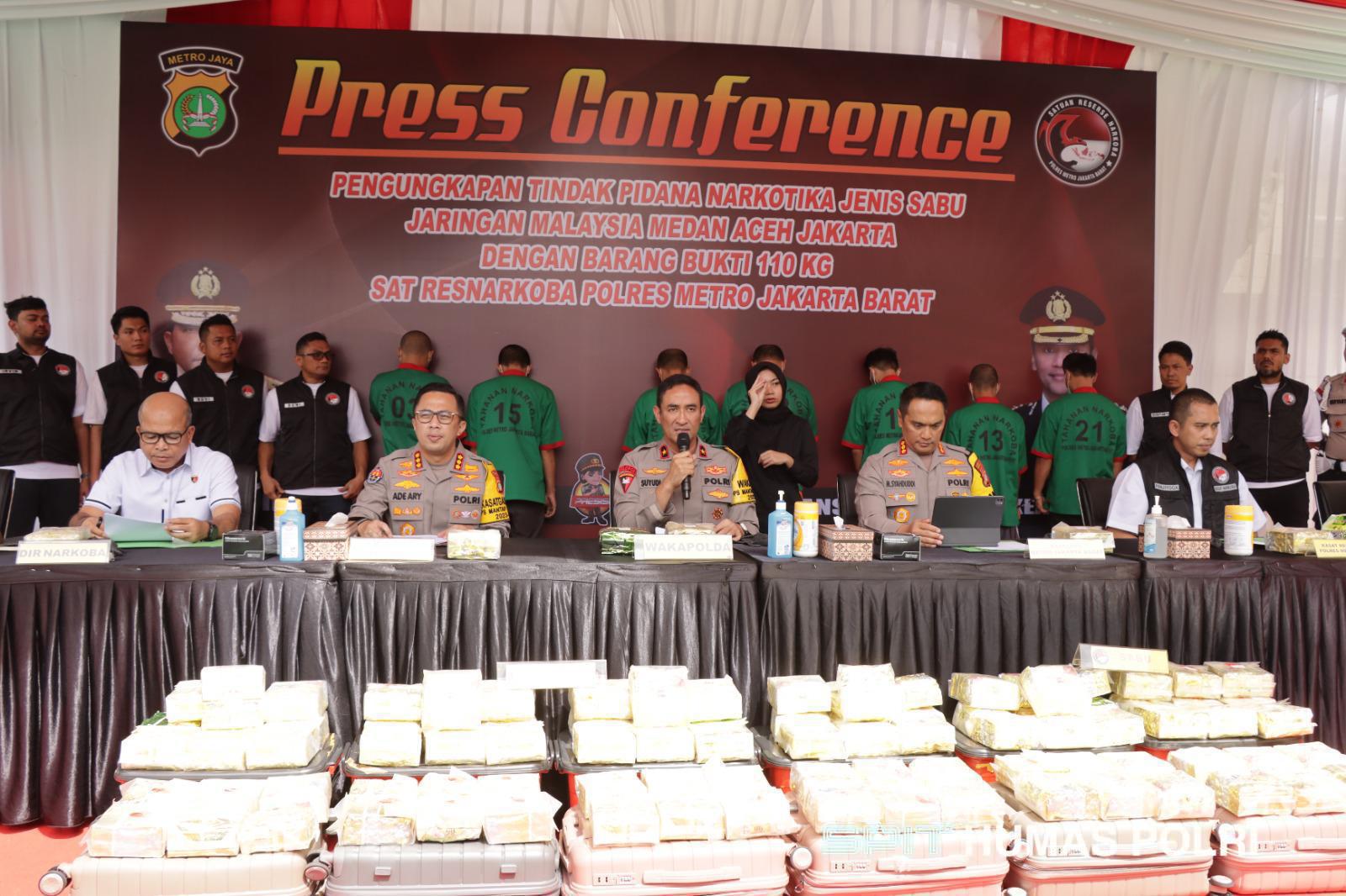 “Total barang bukti yang diamankan mencapai 110 kilogram sabu,” terangnya.