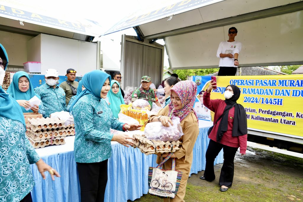 Ketua TP-PKK Kaltara, Hj Rachmawati Zainal, S.H., menyampaikan kebahagiaannya saat menyapa warga yang menunggu dimulainya kegiatan ini. “Pasar murah ini merupakan komitmen kami dalam meringankan beban masyarakat di saat banyak kebutuhan pokok mengalami kenaikan harga. Meski tidak banyak, tapi kami usahakan agar merata,” ujar Rachmawati.