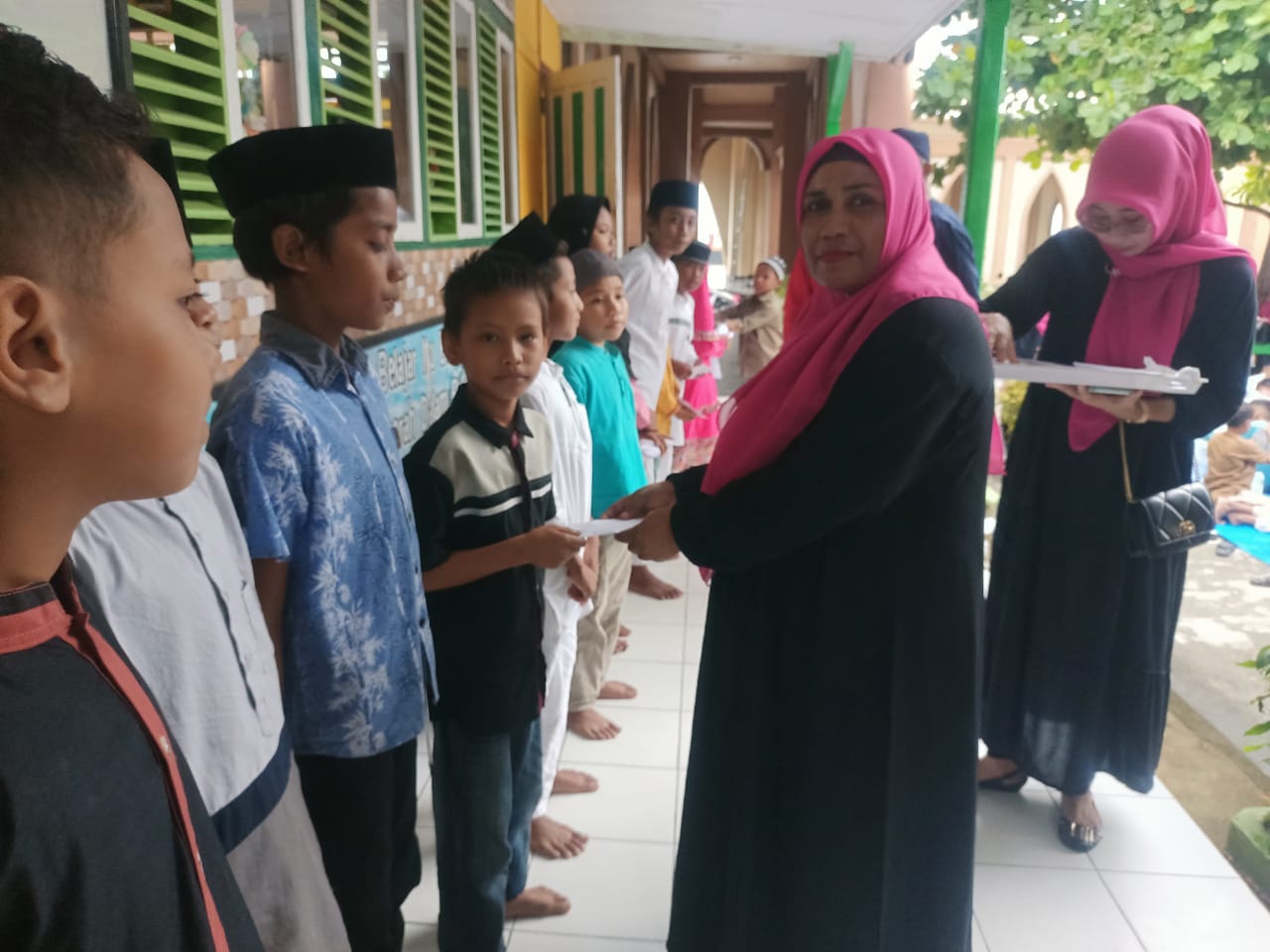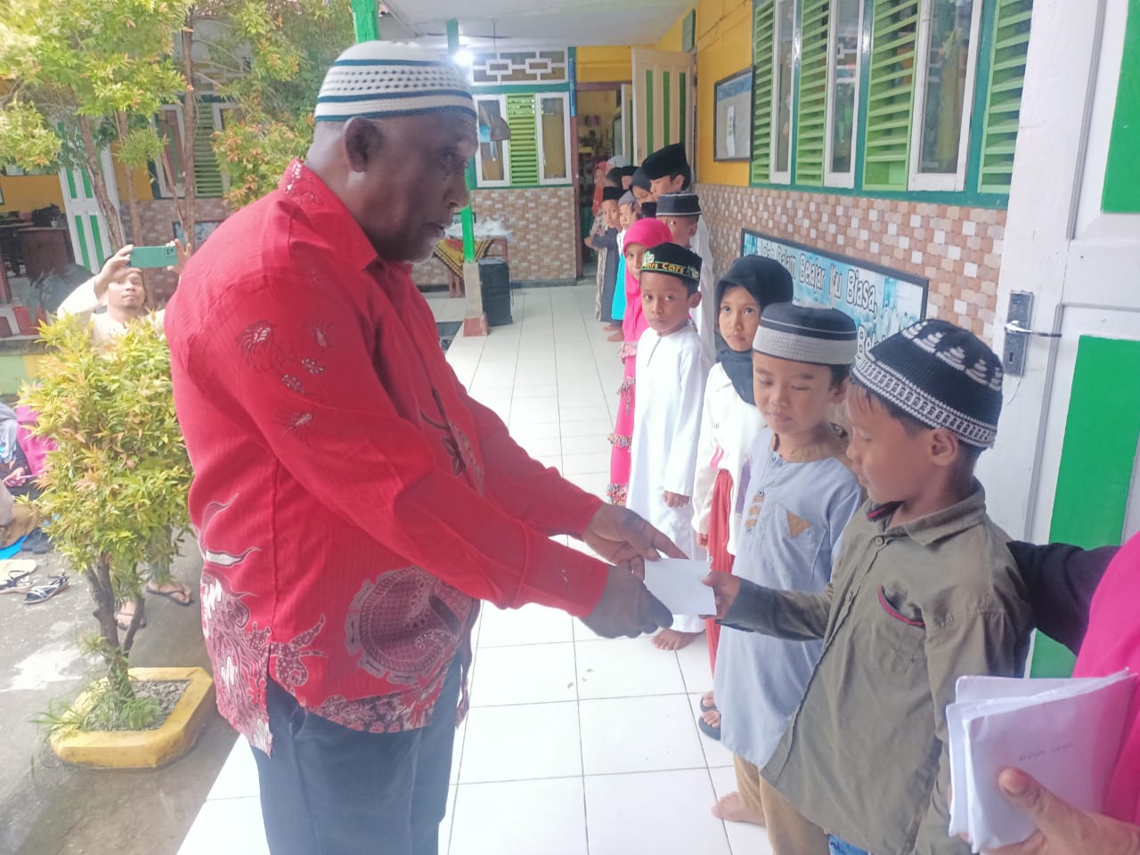 Selain kegiatan batal bersama, kata Kepsek ada juga pemberian santunan. Pemberian santunan itu berupa program sekolah yang sudah jalan selama 1 tahun, yaitu uang berupa Rp1.000 yang dimasukkan ke dalam celengan selama 1 tahun.
