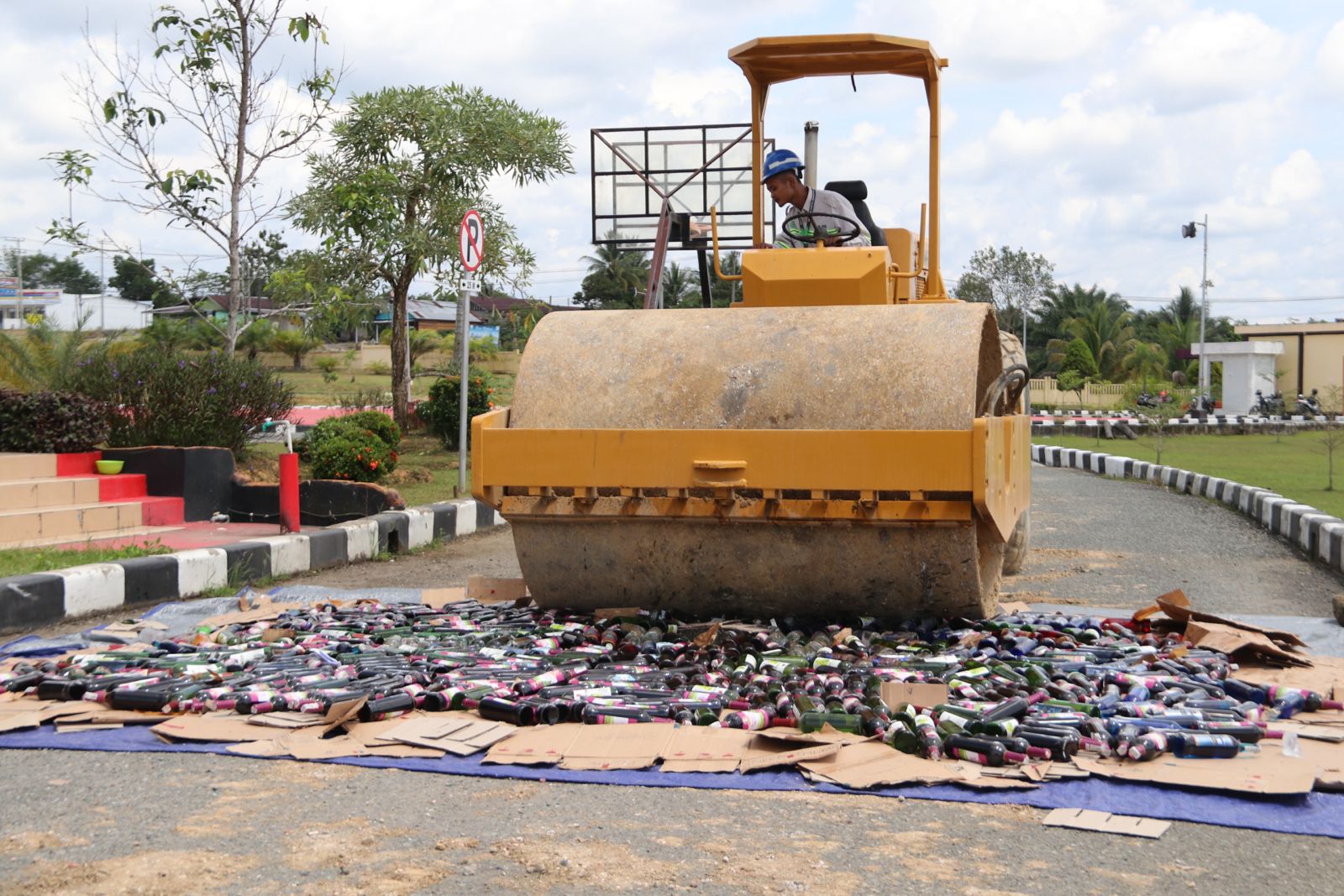 Polda Kalimantan Utara Memusnahkan Barang Bukti 980 Botol Minuman Keras