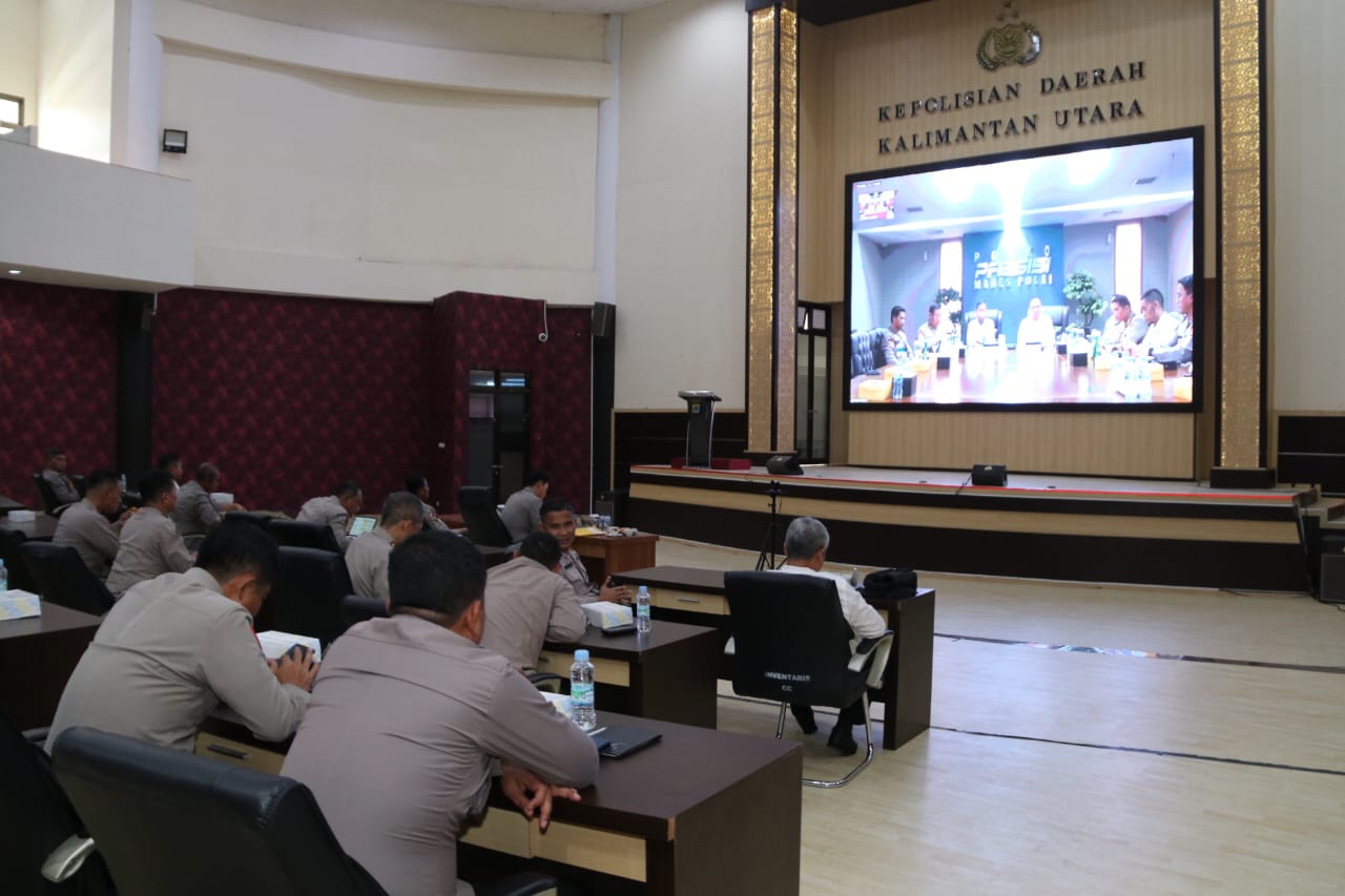 Dihadiri Kapolda Kaltara Irjen Pol. Daniel Adityajaya, S.H, S.I.K, M.Si,. didampingi Irwasda Polda Kaltara Kombes Pol. Drs. R Andria Martinus, M.H, Para PJU Polda Kaltara dan Para Kapolres Jajaran melalui zoom meeting di masing – masing Polres.