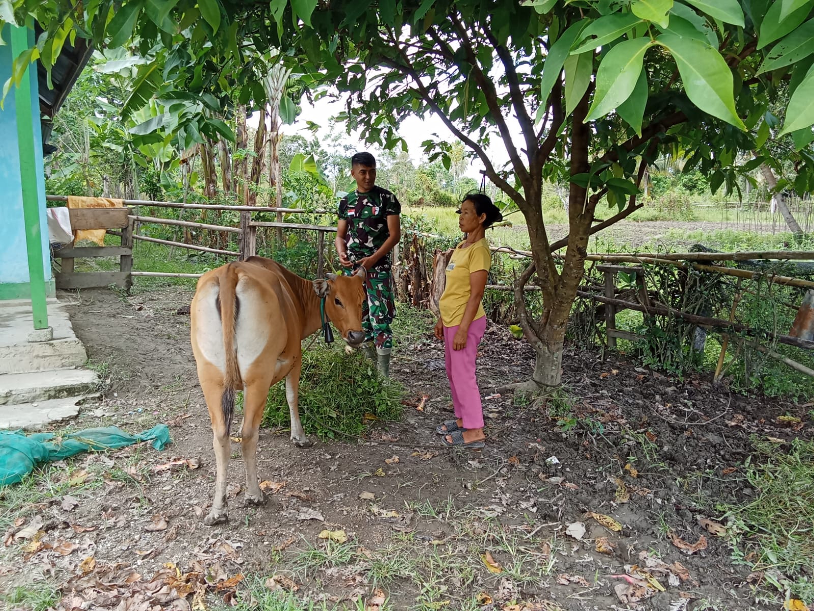 “Kami membantu memberi makan sapi milik pak Suparman untuk memotivasi masyarakat desa agar tidak hanya berkebun saja, melainkan untuk berternak juga,” kata Sertu Rumbia.