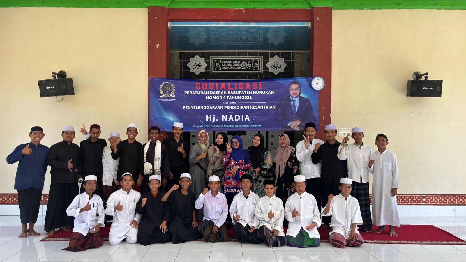 Hj. Nadia menyampaikan tujuan dari sosialisasi perda ini, agar masyarakat dapat memahami hak dan kewajiban khususnya para santri sehingga pelaksanaan pendidikan kesantrian berjalan efektif.