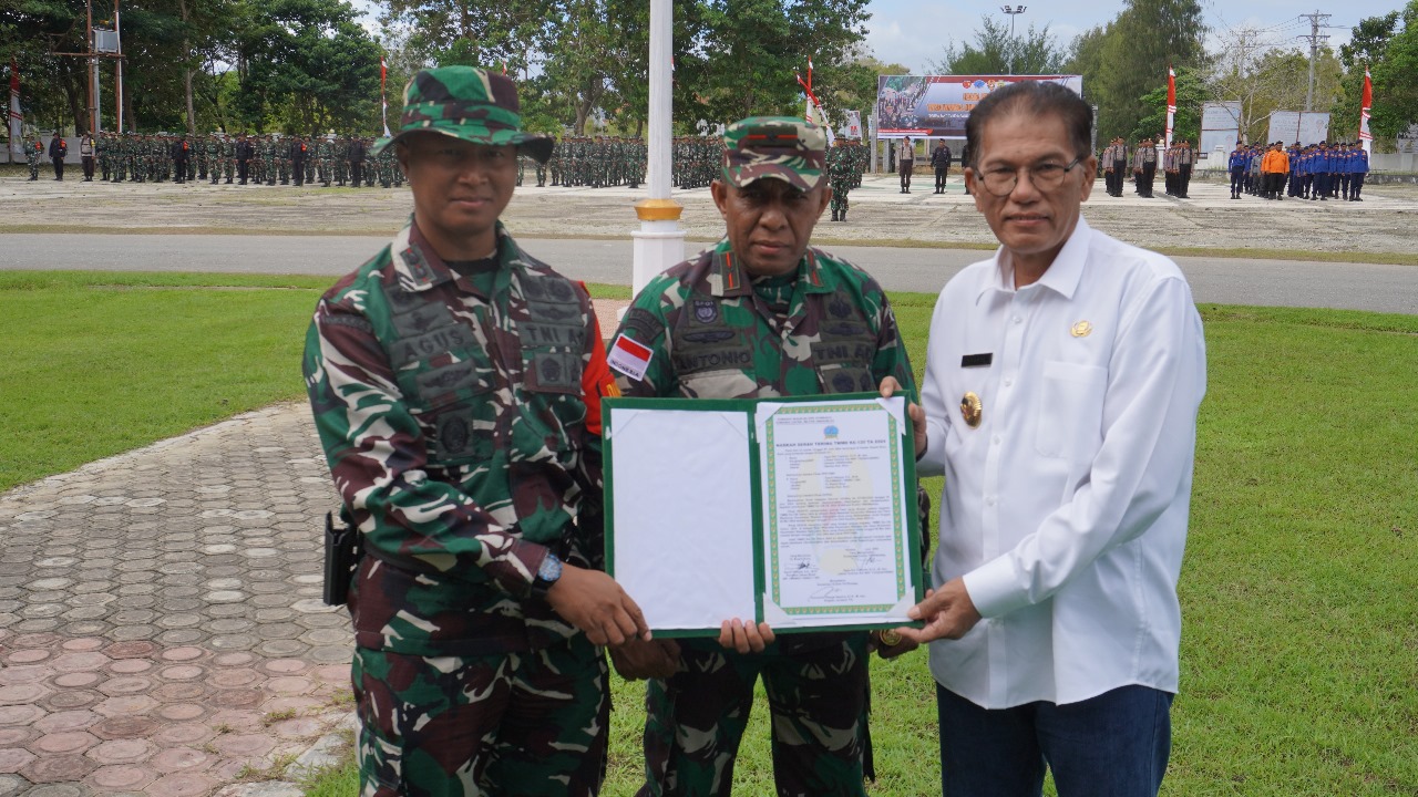 TERASNKRI.COM | MALUKU, NAMLEA – TNI Manunggal Membangun Desa (TMMD) Ke-120 tahun anggaran 2024 secara resmi ditutup. Upacara penutupan dipimpin langsung oleh Danrem 151/Binaiya, Brigjen TNI Antoninho Rangel Da Silva, S.I.P., M. Han, di lapangan Kantor Bupati Buru, Jumat (07/6/2024).