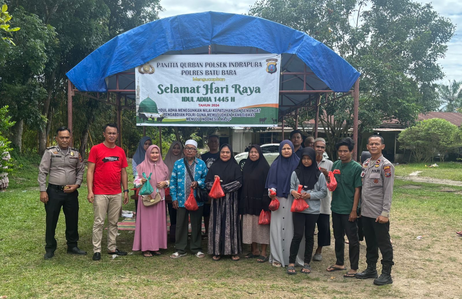 Setelah selesai Pemotongan Hewan Qurban langsung diberikan kepada masyarakat disekitar Polsek Indrapura Polres Batubara yang dapat mengikuti Hari Raya Idul Adha 1444,H. 2024 M.